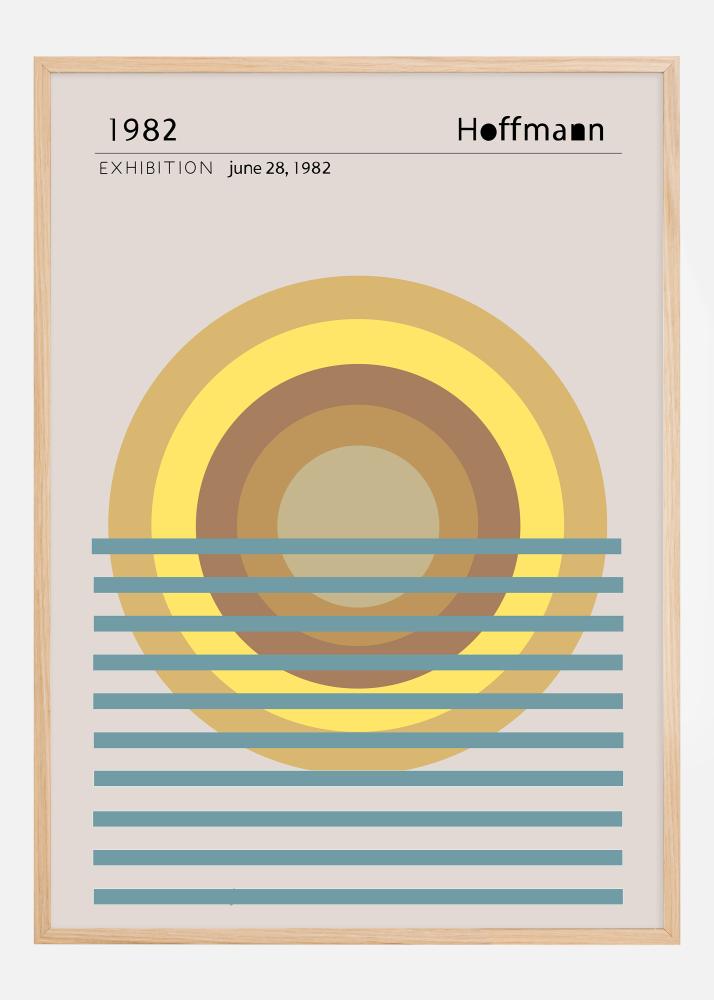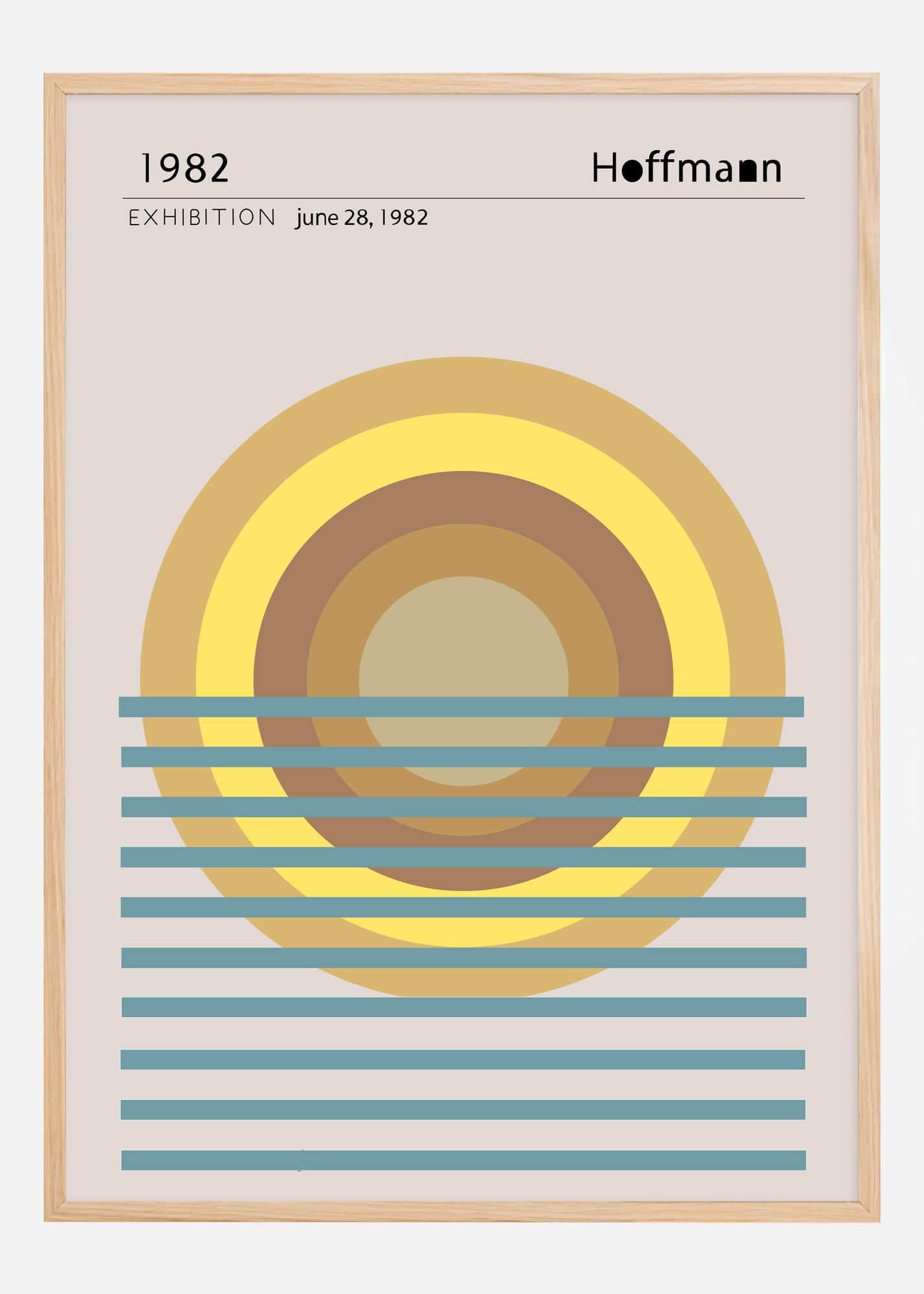 Tento štýlový a konceptuálny plagát je poctou Hoffmannovej výstave z roku 1982. Zobrazuje sériu prekrývajúcich sa kruhov a čiar, ktoré vytvárajú ilúziu západu slnka nad vodou. Farebná paleta je teplá a pozývajúca, s tónmi zlatej, žltej a hnedej, ktoré kontrastujú so studenými modrými odtieňmi, čo vyjadruje pocit rovnováhy medzi dňom a nocou, teplom a chladom.