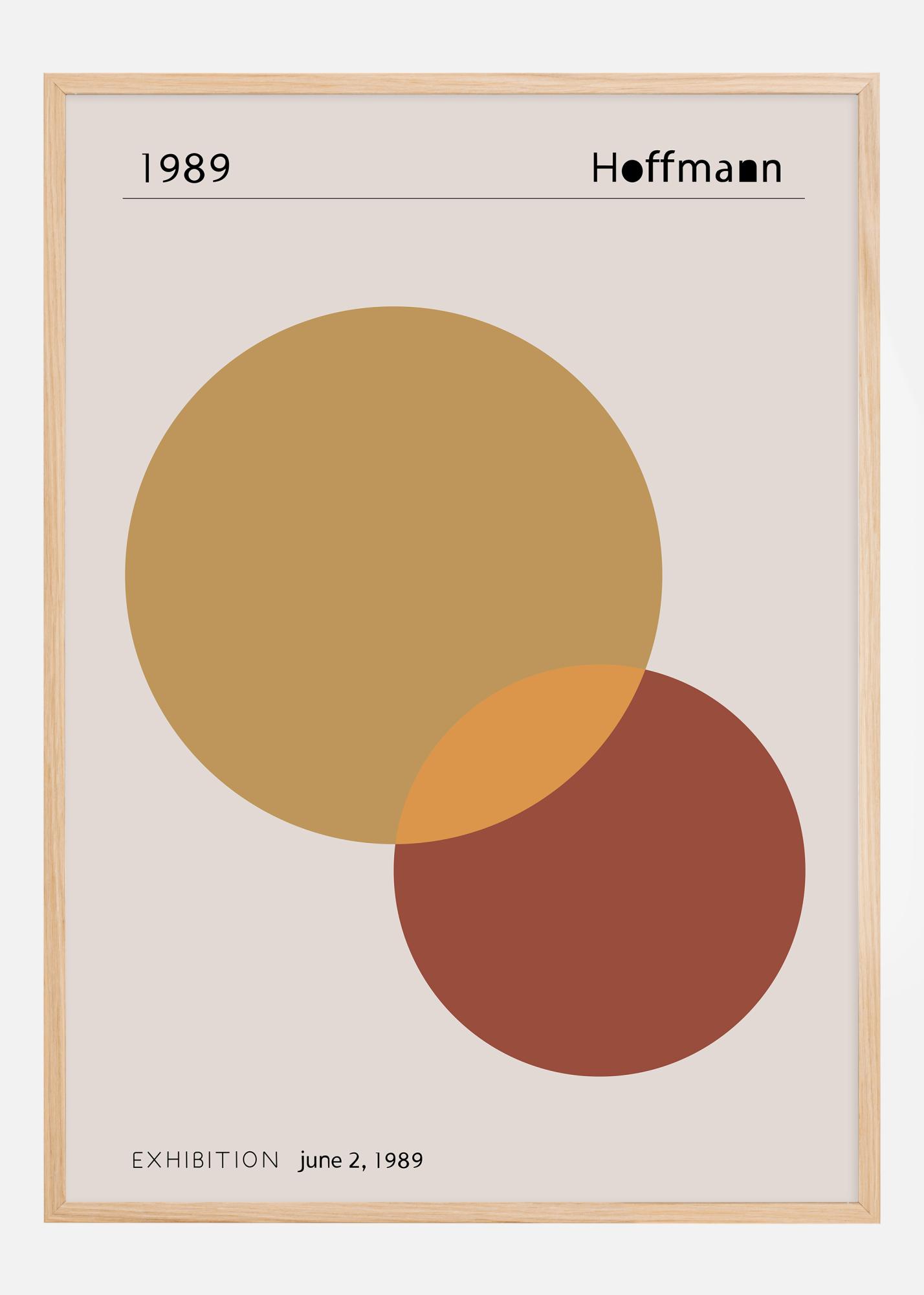 Táto minimalistická a sofistikovaná potla oslavuje výstavu abstraktného umelca Hoffmanna z roku 1989. So štýlovým dizajnom prekrývajúcich sa kruhov v teplých odtieňoch hnedej a okry vytvára tento plagát pocit zároveň retro a modernity. Text je diskrétne umiestnený, aby vytvoril priestor pre vizuál, kde je každý prvok starostlivo vyvážený na vytvorenie atmosférického a pozývajúceho umeleckého diela.