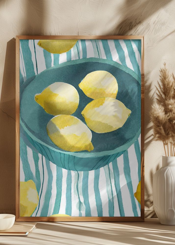 Zitronen in türkisfarbener Schale Plagát
