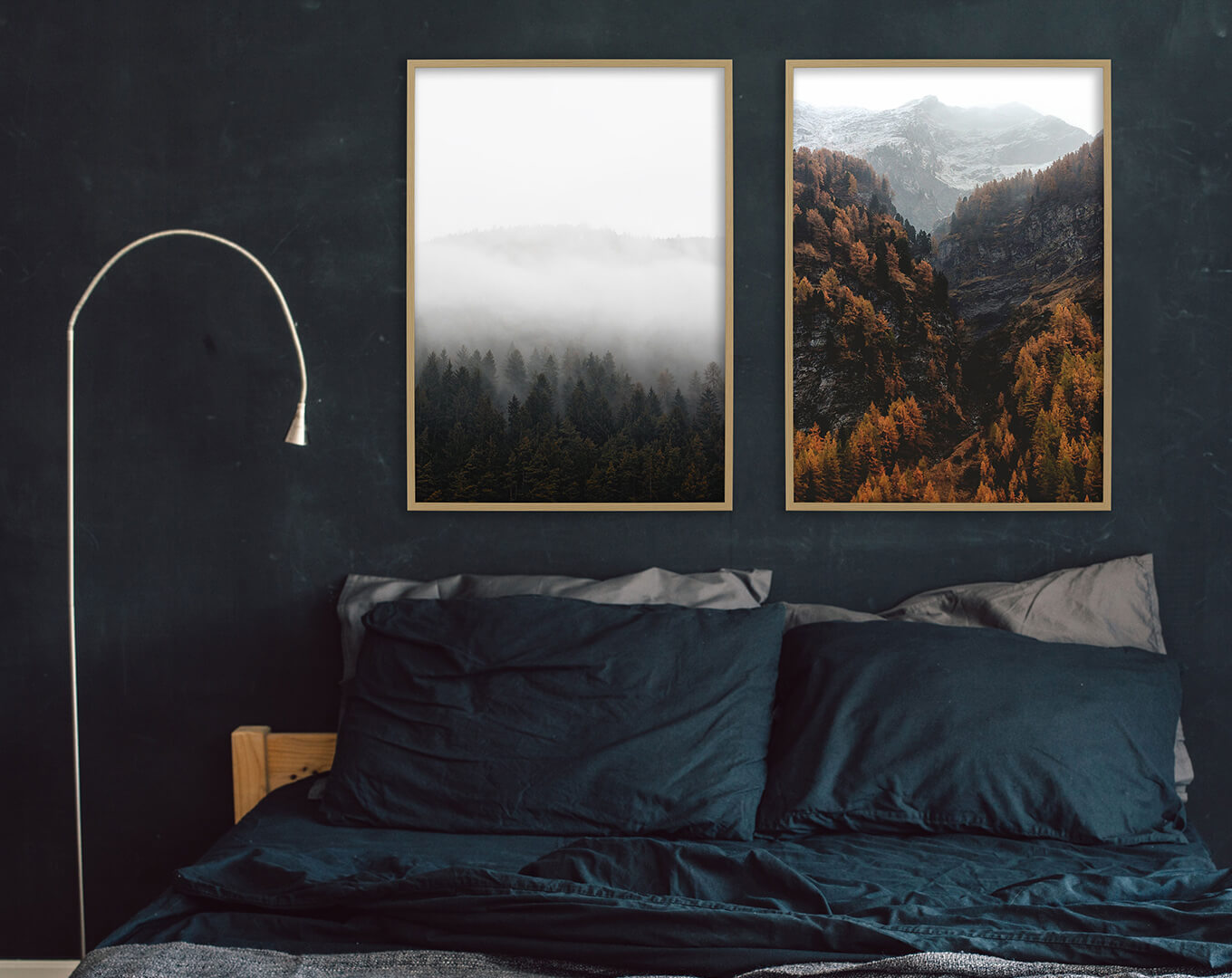 Ak natriete steny tmavou farbou, môžete s výhodou vybrať plagáty alebo iné nástenné umenie v svetlejších odtieňoch. Motívy sa naozaj efektívne vynímajú a zároveň sa vytvára pekná rovnováha medzi svetlými a tmavými tónmi.