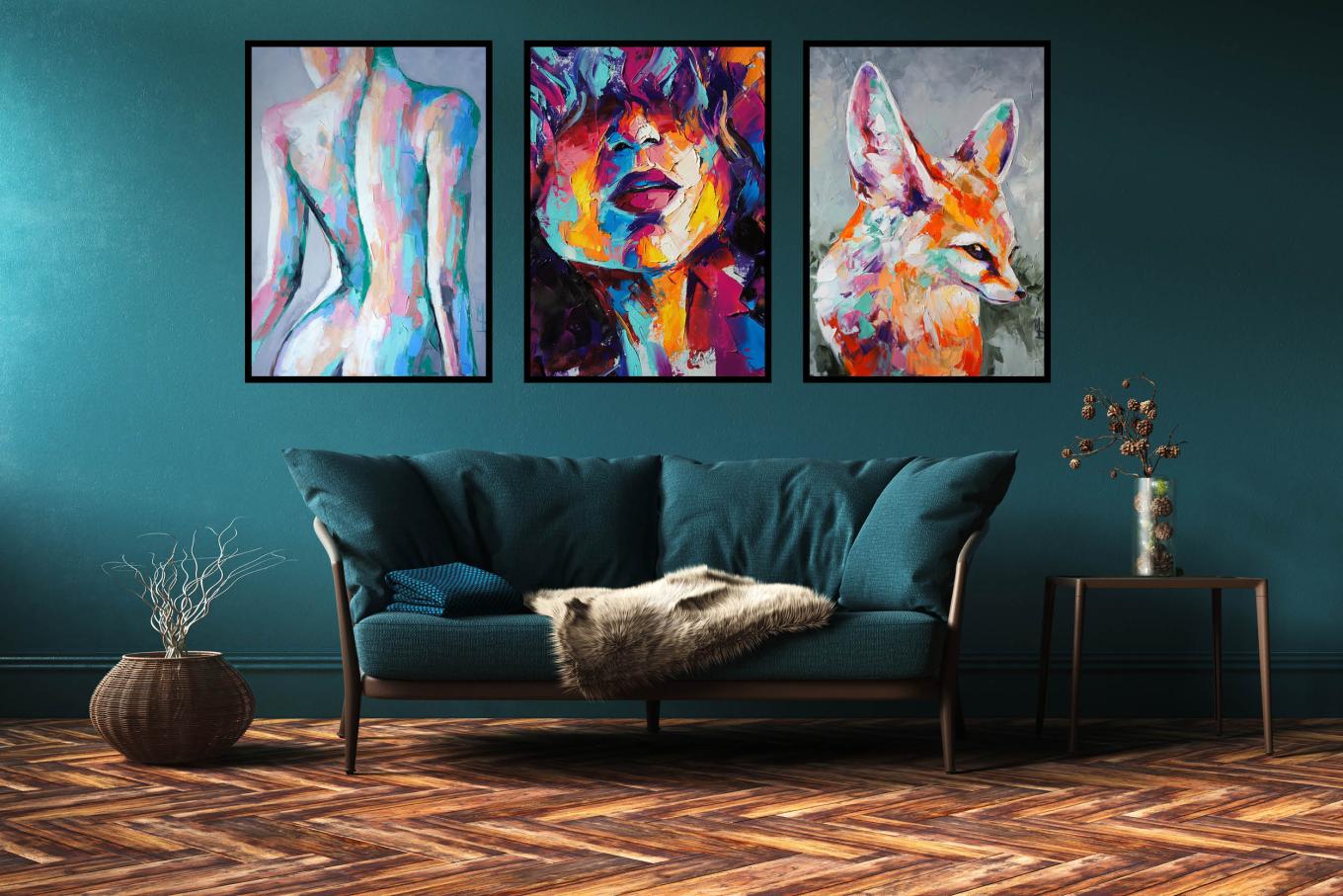 Tento typ obrazovej steny sa krásne vyníma nad pohovkou, posteľou, komodou alebo iným nábytkom.