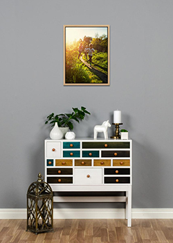 Výber rámu je dôležitý, aby vaše plátno skutočne vyniklo. Vhodný rám sústreďuje pozornosť na váš motív, zároveň vytvára pekné zjednotenie medzi obrazom, stenou a zvyškom interiéru v miestnosti. Možno máte špeciálny štýl interiéru, ktorý chcete ešte viac zdôrazniť? Obraz s rámom v rovnakom duchu môže tomu rozhodne pomôcť! Existuje mnoho rôznych dizajnov tieňových rámov, aby ste mohli nájsť ten, ktorý najlepšie vyhovuje vášmu plátnu a vášmu osobnému štýlu.