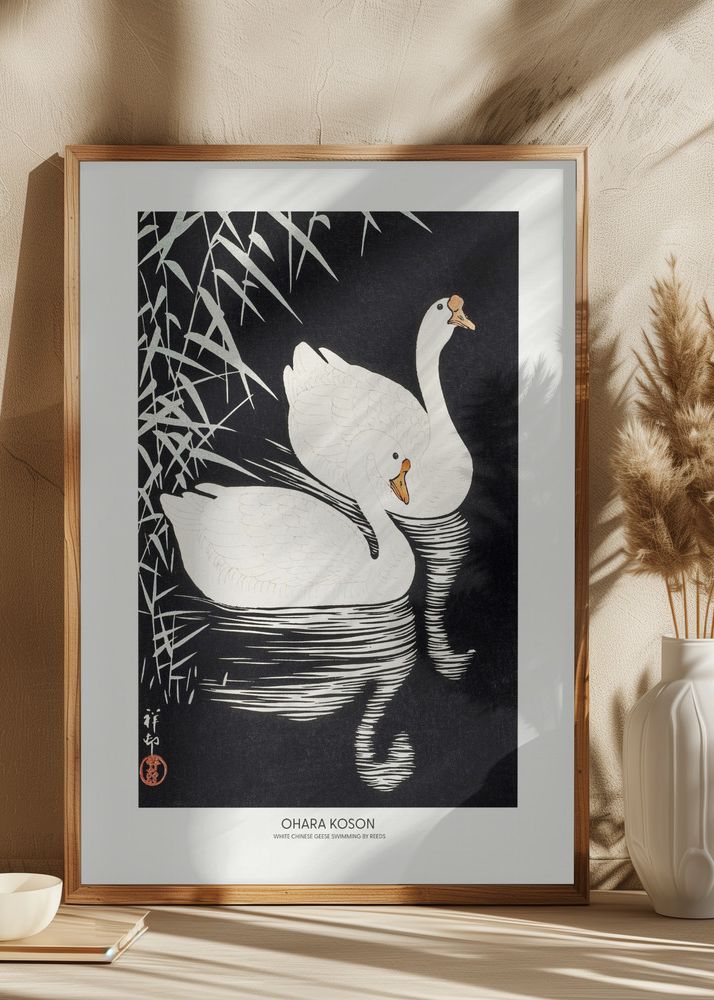 https://www.bgastore.sk/White-Chinese-Geese-Swimming-by-Reeds-Plagat-60x90-cm