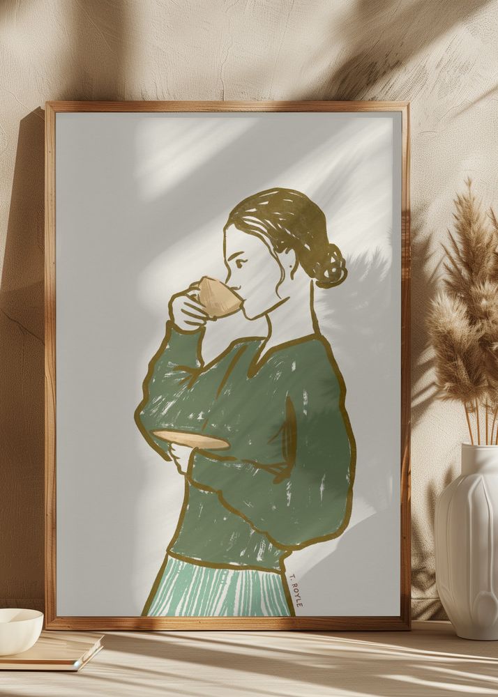 https://www.bgastore.sk/Woman-Drinking-Tea-in-Green-Plagat-30x40-cm