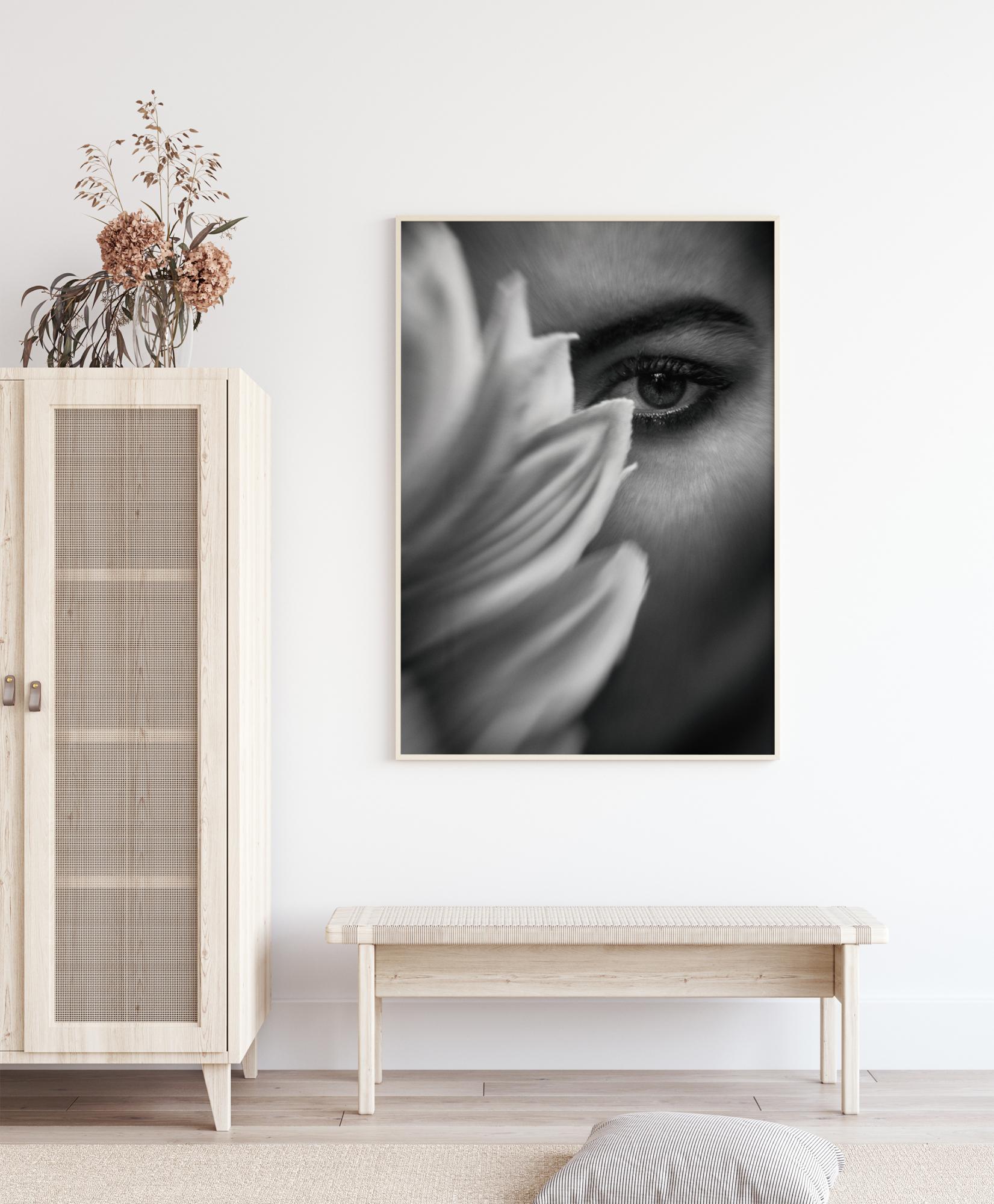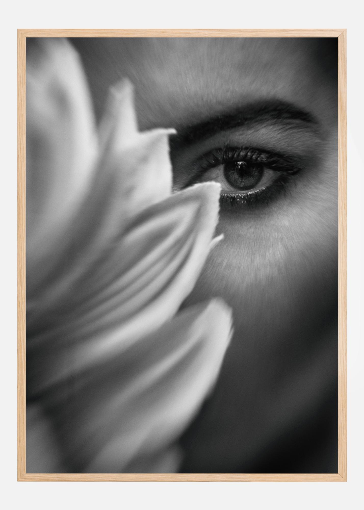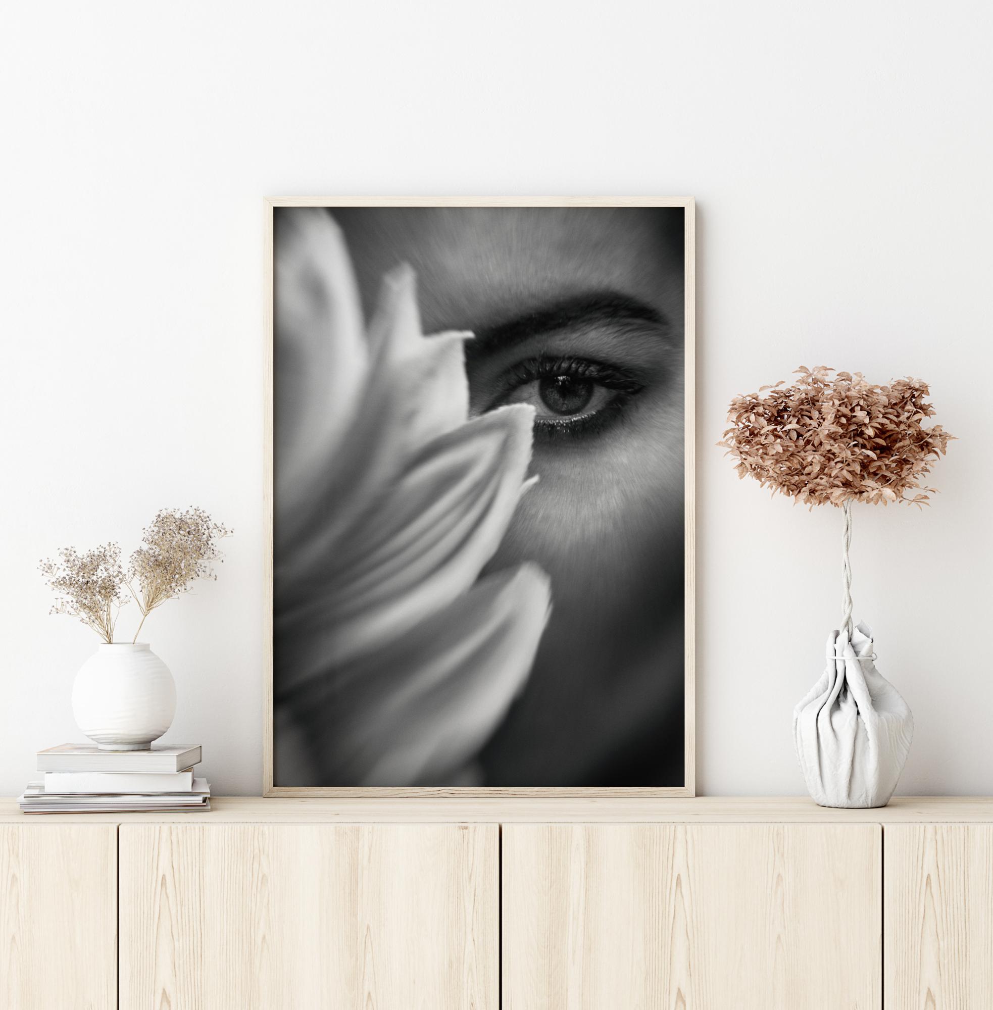 Fantastický plagát s kvetom a detailom ženského oka. Jemné čiernobiele tóny ho robia výrazným voči všetkým farbám. Premeňte akúkoľvek miestnosť na pokojnú oázu duševného rozjímania.