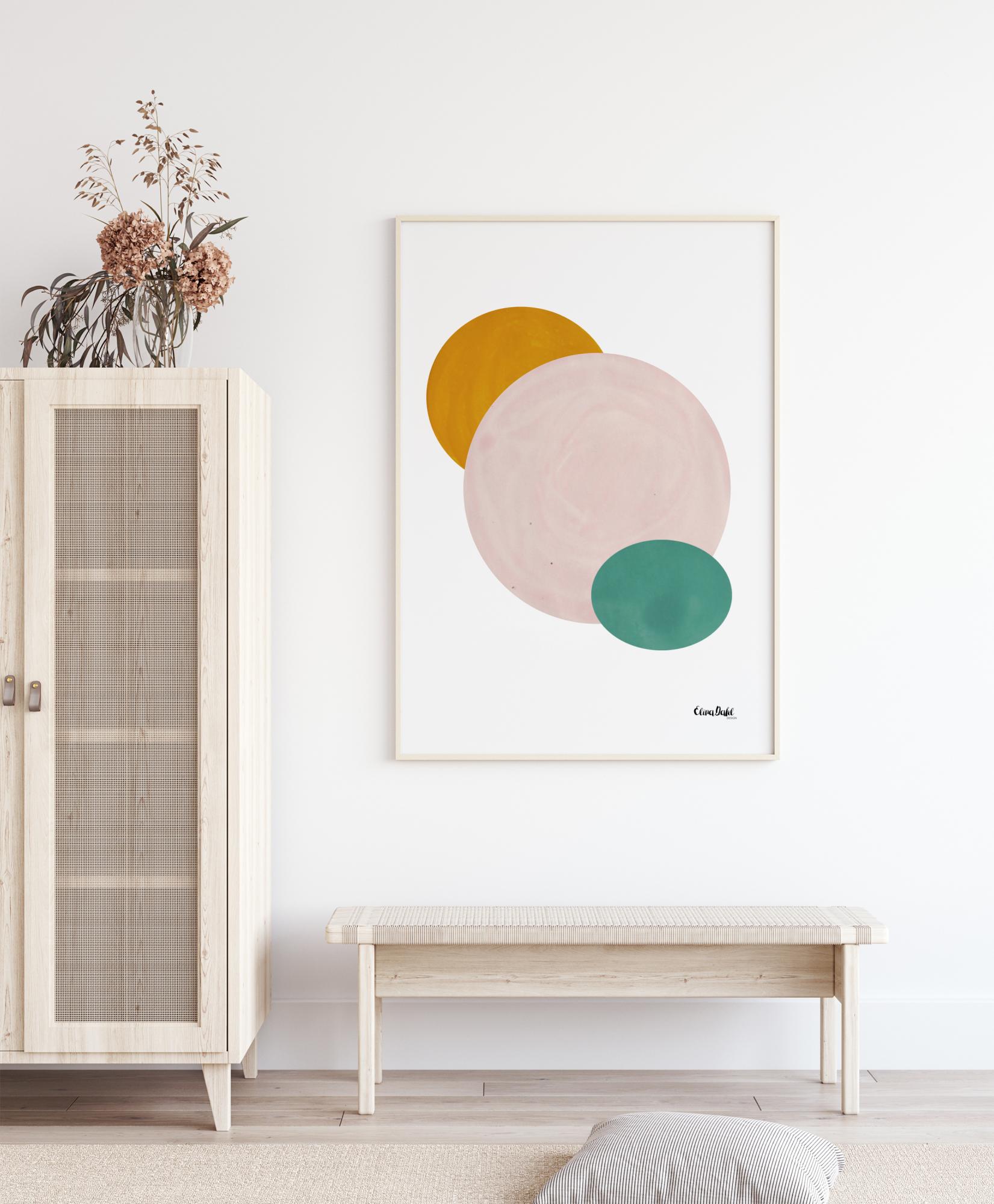 Krásne nekomplikovaný abstraktný plagát s pastelovými grafickými tvarmi, vytvorený dizajnérkou Elinou Dahl. Elegantný obraz, ktorý sa výborne hodí napríklad do minimalisticky, moderne alebo retro inšpirovaného domova. Tento plagát sa úžasne hodí s ďalšími plagátmi Eliny Dahl v rovnakom štýle.