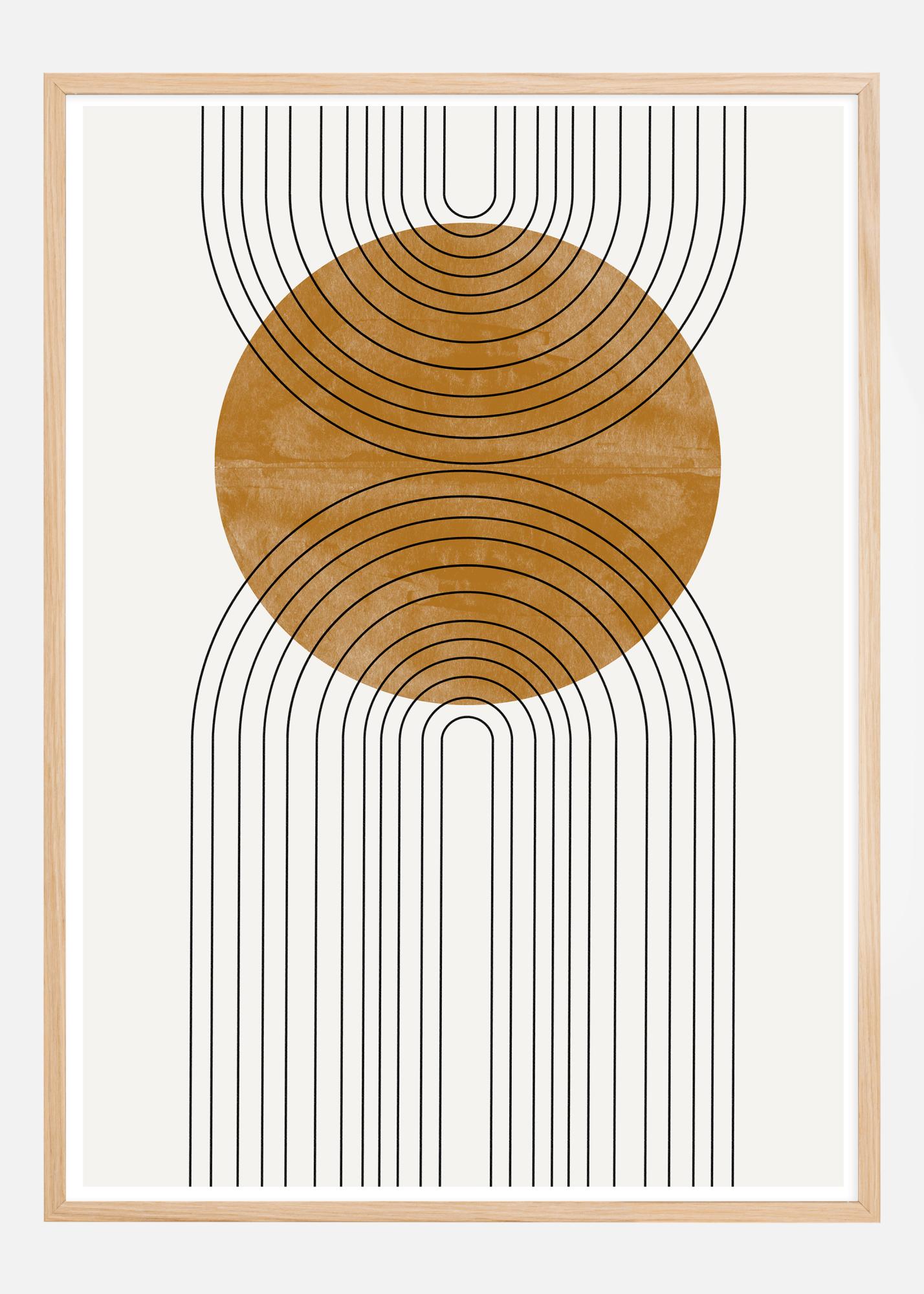 Táto poster zachytáva výnimočnú kombináciu geometrie a prírody so svojimi oblúkovitými líniami, ktoré tvoria dve prekrývajúce sa polkruhy. Neobvyklý dizajn vytvára pocit pohybu a rovnováhy, zatiaľ čo teplé hnedasté tóny poskytujú pocit zemitej stability. Jej čisté a plynulé línie v čiernej farbe nádherne kontrastujú so svetlým pozadím a sýtou hnedastou farbou, čím vytvárajú obraz, ktorý je súčasný a zároveň nadčasový.