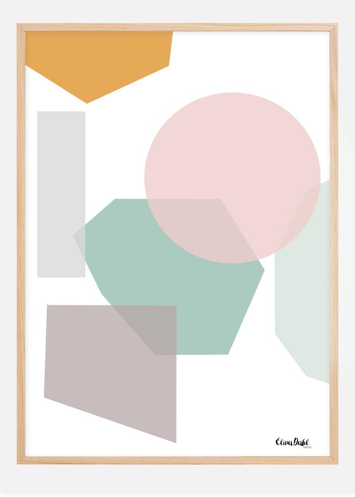 Abstraktný plagát s grafickými tvarmi v krásnych pastelových farbách vytvorený dizajnérkou Elinou Dahl. Motív sa dokonale hodí do moderného domova alebo možno do detskej izby? Radi doplňte s viacerými z našich krásnych plagátov Eliny Dahl pre väčšiu obrazovú stenu v rovnakom tematickom štýle.