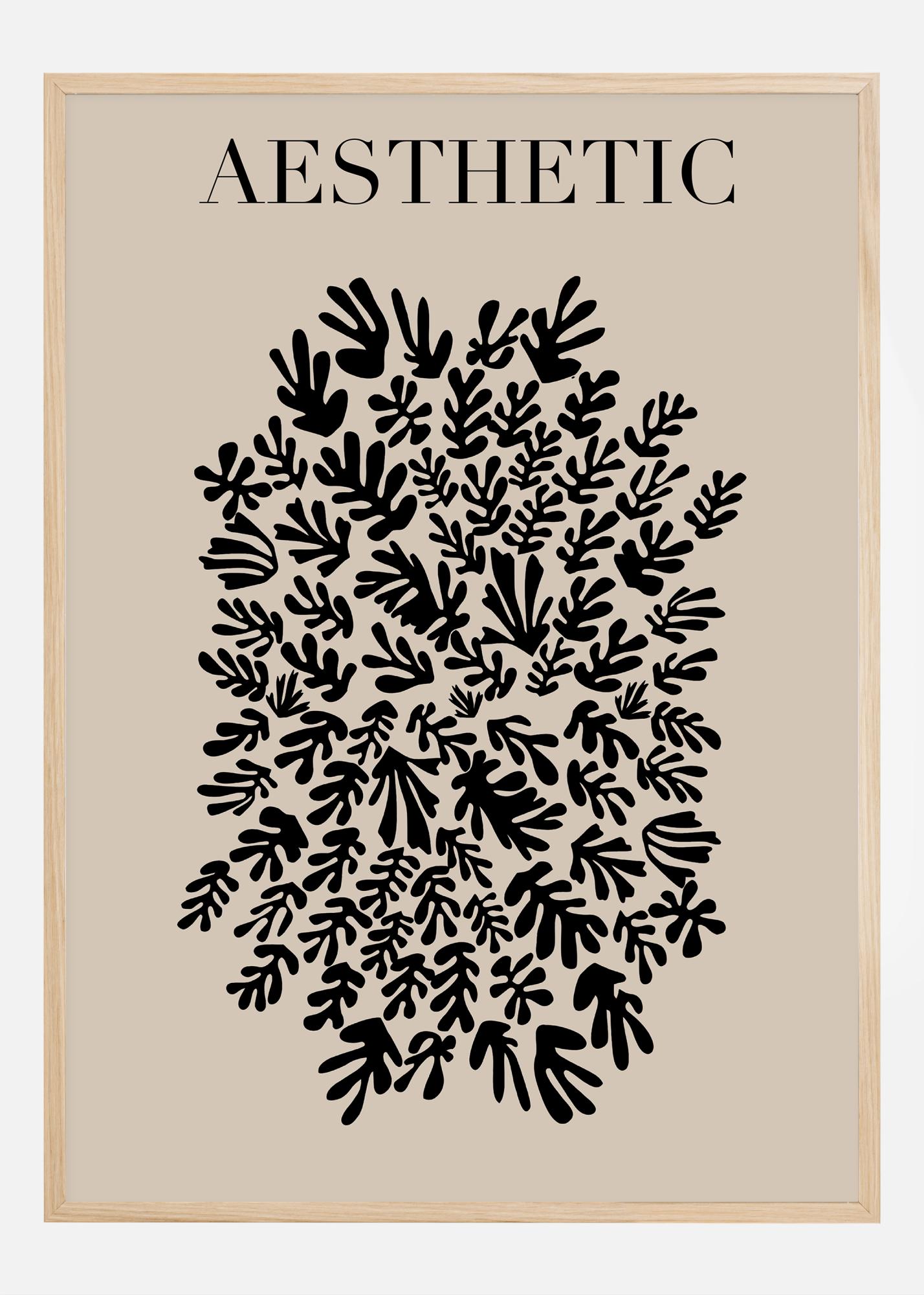 So svojím moderným výrazom a jednoduchou farebnou paletou, obmedzenou na čiernu a béžovú, ponúka tento print upokojujúci a vyvážený dojem. Slovo "AESTHETIC", umiestnené v hornej časti motívu, slúži ako mocná pripomienka večnej krásy dizajnu a prírody. Tento plagát by sa výborne hodil do interiéru, kde si prajete vytvoriť oázu pokoja a inšpirácie, alebo ako súčasť väčšej galerijnej steny na vytvorenie zjednocujúceho vizuálneho zážitku.