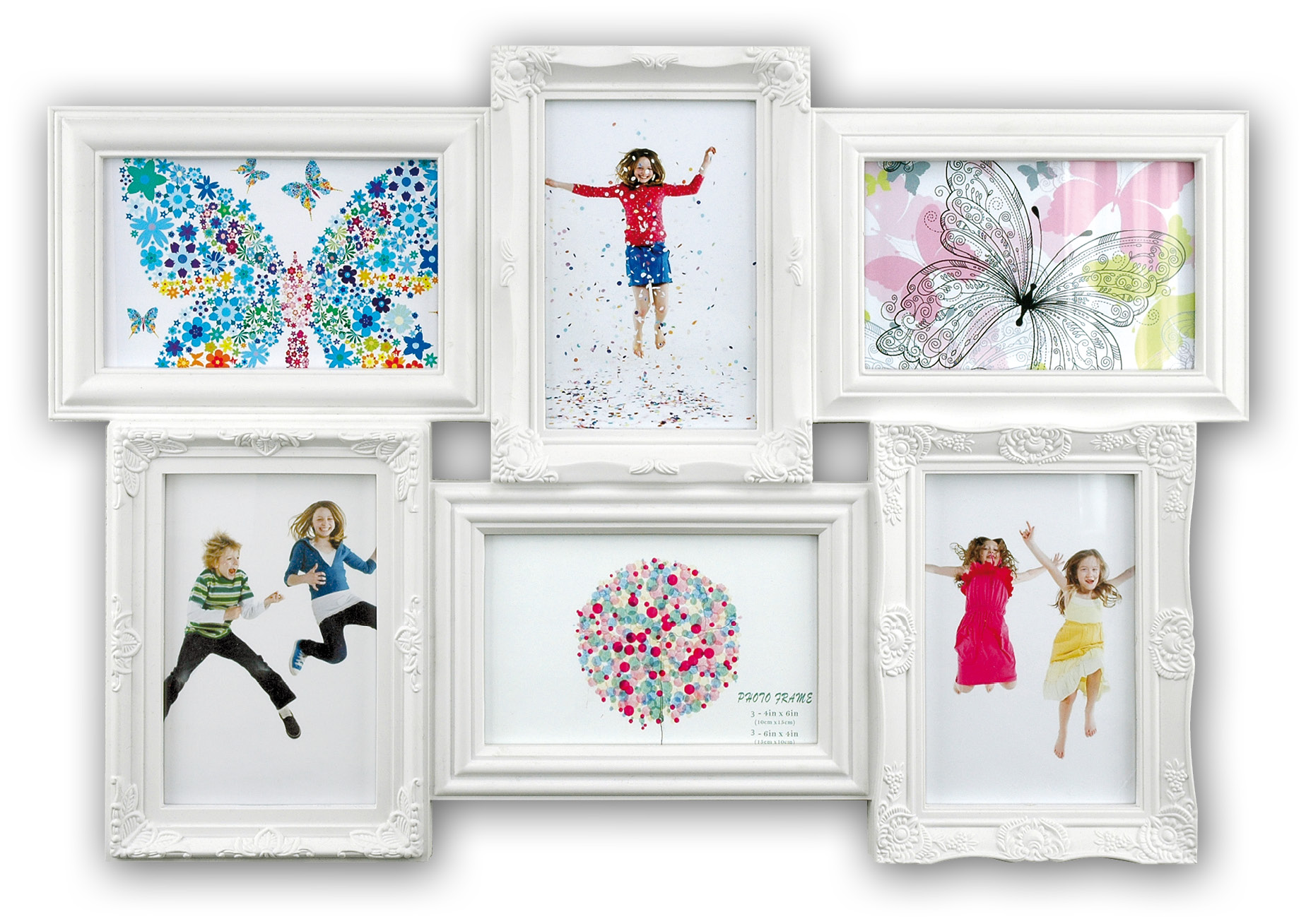 Krásne zdobený kolážový rám v bielej farbe so širokým profilom v klasickom štýle. Perfektný na obrázky, ktoré máte obzvlášť radi.