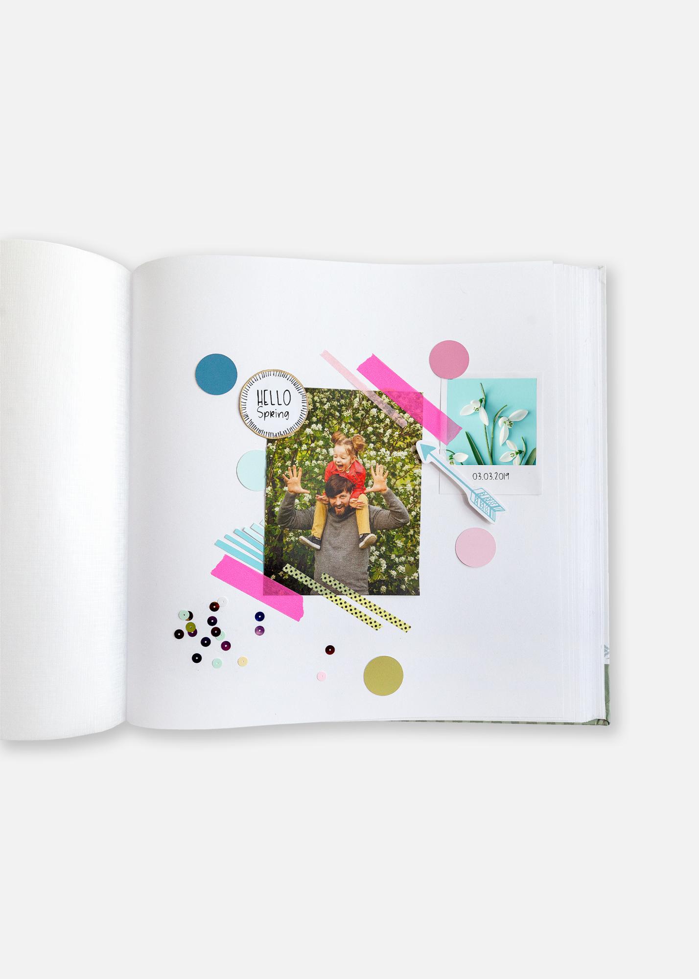 Album obsahuje 100 bielych strán, čo zodpovedá 50 listom, na ktorých môžete svoje fotografie usporiadať presne podľa vašich predstáv. Ochranné pergamenové listy medzi každou stranou zabezpečujú, že vaše fotografie zostanú v perfektnom stave a zabránia ich poškriabaniu navzájom.