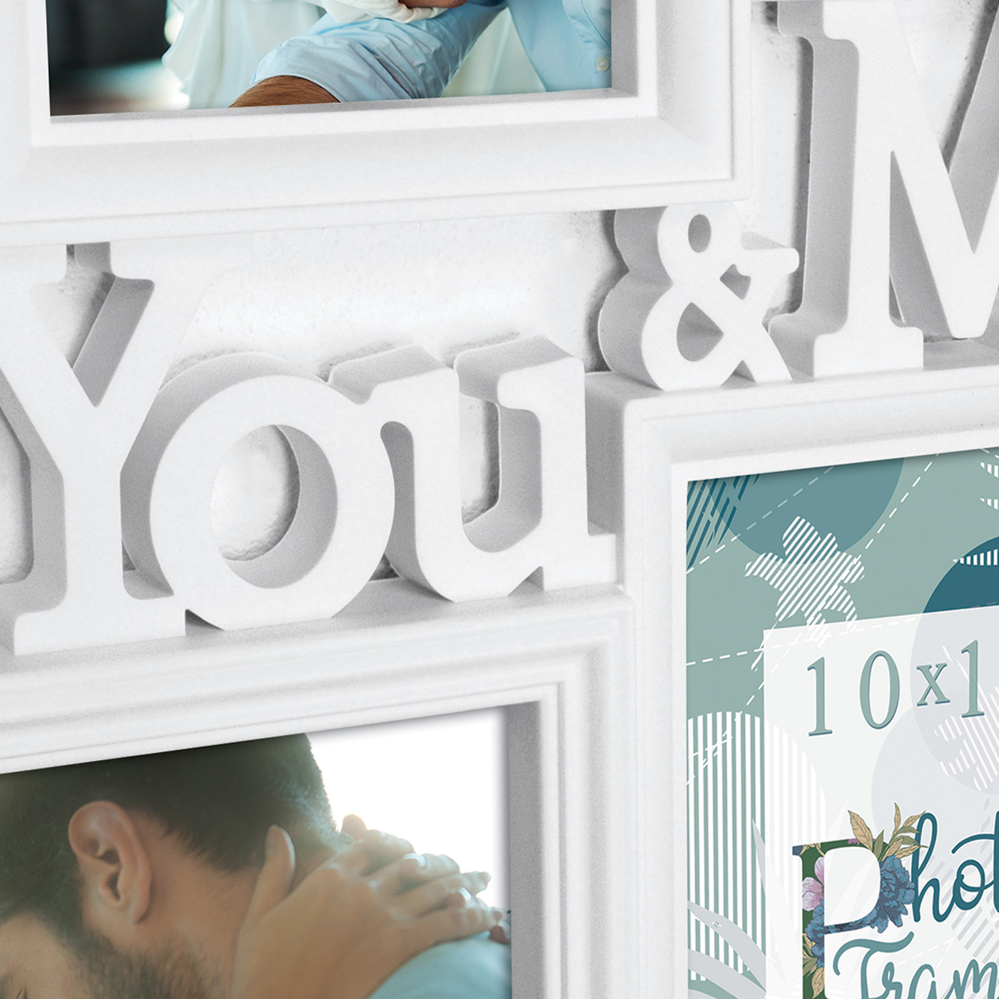 Toto je pekný kolážový rám s miestom pre 6 obrázkov vo vzpriamenej aj ležatej polohe. Uprostred sú slová You & Me, možno budete chcieť vložiť pekné fotografie so svojím najlepším priateľom do tohto rámu, alebo možno fotografie so svojím partnerom! Nech už je to akokoľvek, tento rám je ideálny na usporiadanie skupiny pekných fotospomienok s Vašimi najbližšími. Kolážový rám je vhodný pre obrázky s rozmermi 10x15 cm. Rám má elegantný biely odtieň a je vyrobený z kompozitu. Nástenný držiak je k dispozícii. Vonkajšie rozmery sú 47,5x38 cm.
