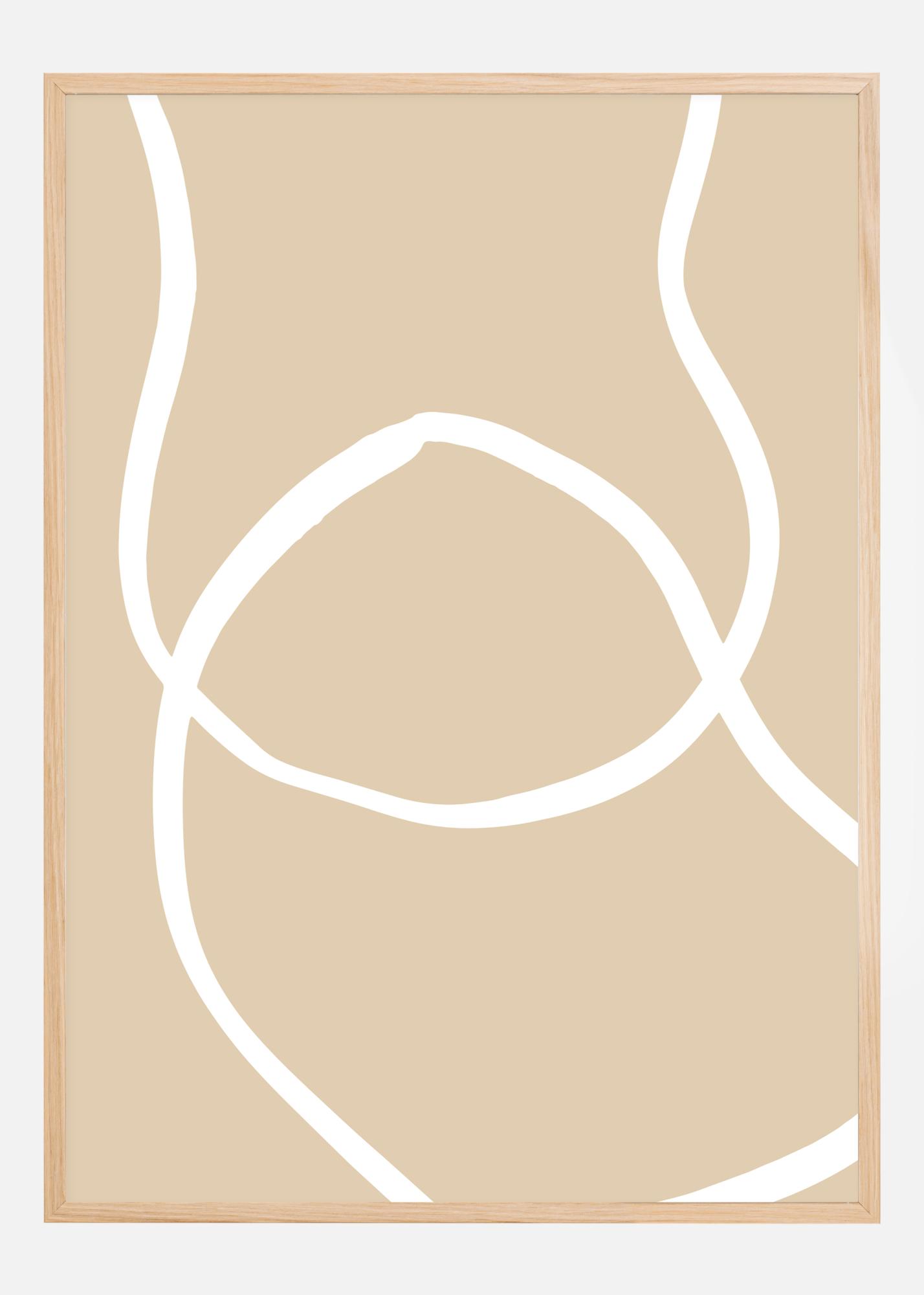 Minimalistický plagát so smotanovo bielymi líniami tvoriacimi tvary na béžovom pozadí. Zakrivené línie sa pohybujú cez obrázok, s priesečníkom v strede, ktorý priťahuje pohľad k prekrývajúcemu sa kruhovému tvaru. Aby ste urobili odvážne vyhlásenie, môžete tento obrázok zavesiť na svetlomodrú stenu, aby ste zvýraznili béžovú farbu.