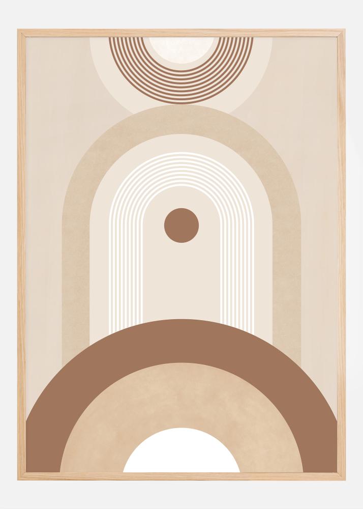 Preskúmajte krásu geometrie a minimalizmu s týmto výrazným plagátom, súčasťou našej kurátorovanej umeleckej zbierky. Tento tlač, inšpirovaný estetikou mid-century modern, kombinuje kruhové tvary a línie, aby vytvoril pocit rovnováhy a harmónie. Jemné béžové a hnedé tóny tohto plagátu sprostredkovávajú pocit pokoja a sú ideálne na vytvorenie uvoľnenej a elegantnej atmosféry v každej miestnosti.