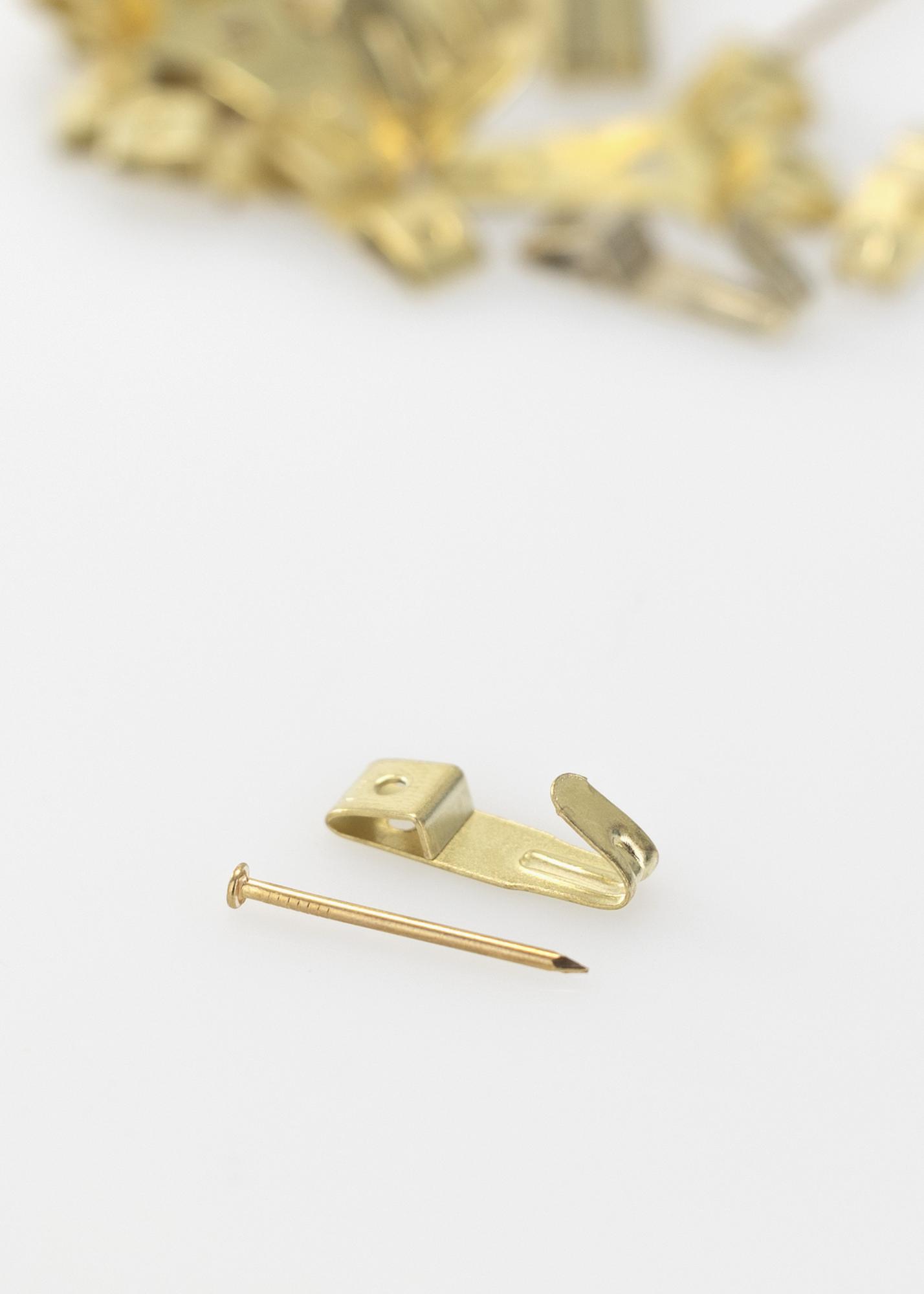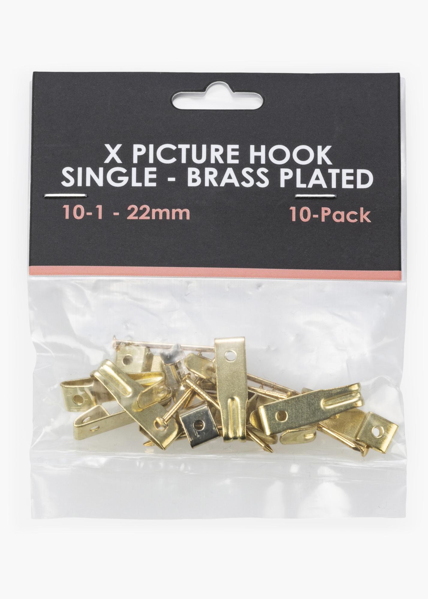 X-hák na montáž na drevenú alebo sadrokartónovú stenu. Zvládne zaťaženie až do 5 kg. Mosadzná farba.