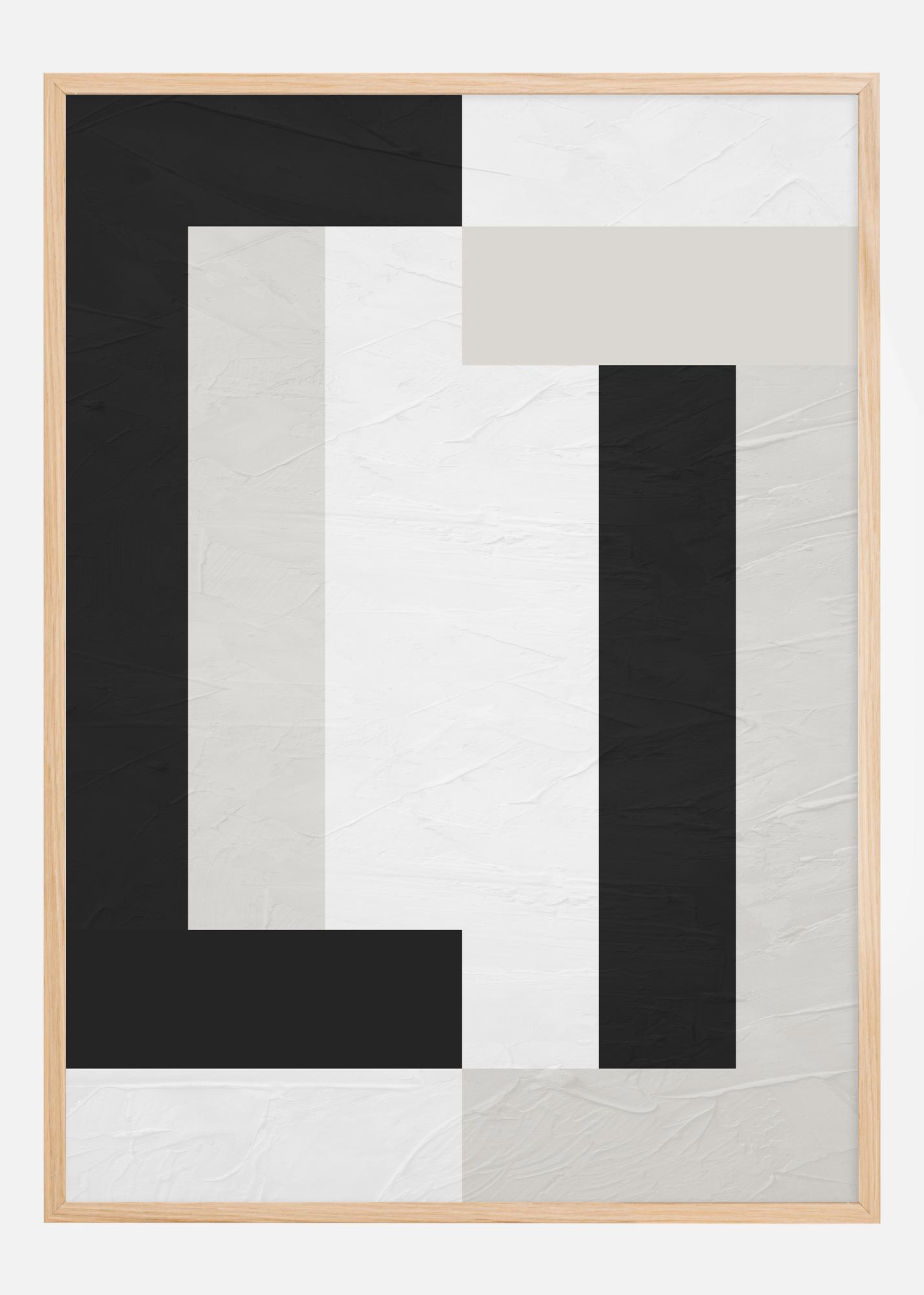 Tento výrazný plagát kombinuje jednoduchosť modernej umenia s odvážnym geometrickým dizajnom. Kontrastná hra medzi čiernou a bielou je rozdelená do obdĺžnikových blokov a čiar, ktoré spoločne vytvárajú predstavu o rovnováhe a asymetrii. Ideálny pre tých, ktorí si cenia silné vizuálne výrazy, tento print perfektne zapadá do minimalistického alebo súčasného domova. Ponúka štýlovú jednoduchosť, ktorá môže byť stredobodom miestnosti alebo prispieť k väčšej, zložitejšej kompozícii.