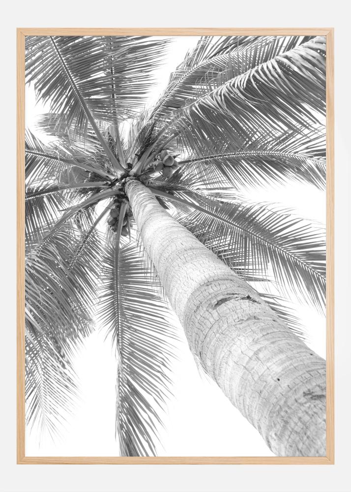 Tento minimalistický a elegantný čiernobiely plagát zobrazuje palmu z neobvyklého pohľadu, smerom nahor k nebu. Kontrast medzi detailnými listami palmy a hladkou kôrou vytvára dynamickú textúru, ktorá zachytáva podstatu tropickej krásy. Čiernobiele spracovanie dodáva nadčasový a sofistikovaný pocit, ktorý povznáša dekoráciu každej miestnosti.