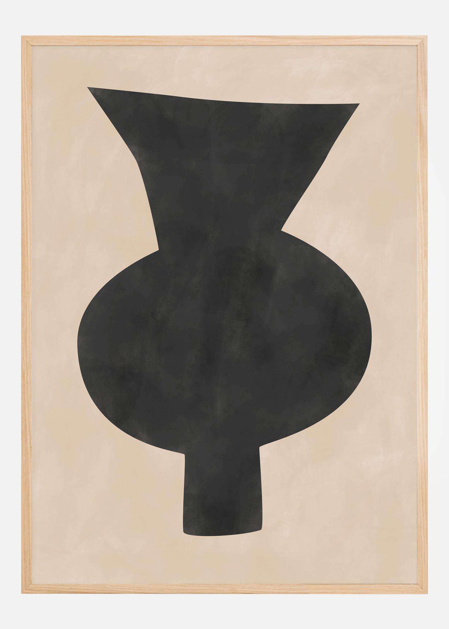 Tento plagát zachytáva podstatu súčasného abstraktného umenia svojím odvážnym a jednoduchým čiernym tvarom, ktorý pripomína vázu alebo sochu, a tým ponúka pôsobivý vizuálny efekt na neutrálnom pozadí. Kontrast medzi hlbokou čiernou a upokojujúcou béžovou robí z tohto plagátu perfektný kus pre tých, ktorí chcú vytvoriť štýlové, no rozhodné interiérové vyjadrenie. Dynamická a mierne organická silueta tvaru vytvára pocit pohybu aj pokojnosti, čo pozýva k reflexii a interpretácii.