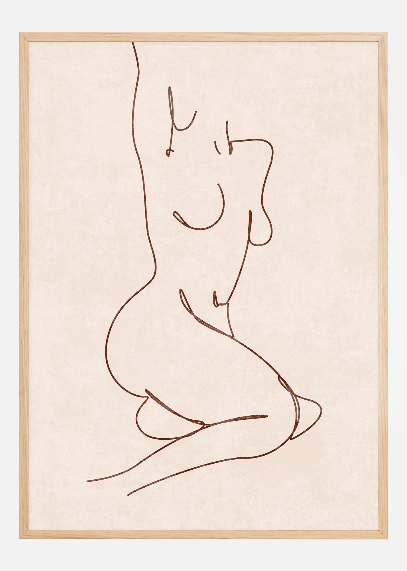 Tento elegantný a minimalistický poster zobrazuje ženskú figúru v jednoduchej, plynulej línii. Jemný výraz umenia a zjednodušený štýl sú oslavou krásy jednoduchosti. Sugestívny obrys vytvára silný obraz s minimálnymi detailmi, čo predstavuje súčasnú interpretáciu klasickej krásy a prirodzených kriviek tela.
