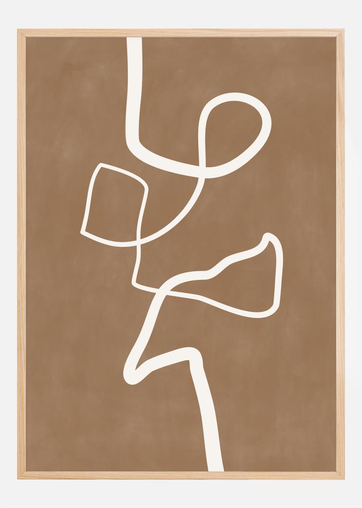 S jemnou a súčasnou eleganciou prenáša tento plagát jednoduchú eleganciu cez jedinú, nepretržitú bielu čiaru, ktorá vykresľuje abstraktný tvar na teplom hnedom pozadí. Toto umelecké dielo stelesňuje dušu minimalizmu a ponúka čistý a nekomplikovaný štýl, ktorý však dokáže zaujať oko a fantáziu. Čiara sa voľne a neobmedzene vinie, vytvára otvorené a uzavreté tvary a ponúka vizuálnu poéziu, ktorá je upokojujúca a zároveň intelektuálne stimulujúca. Perfektné pre milovníka minimalistického dizajnu, tento print je vkusným doplnkom každej modernej dekorácie.