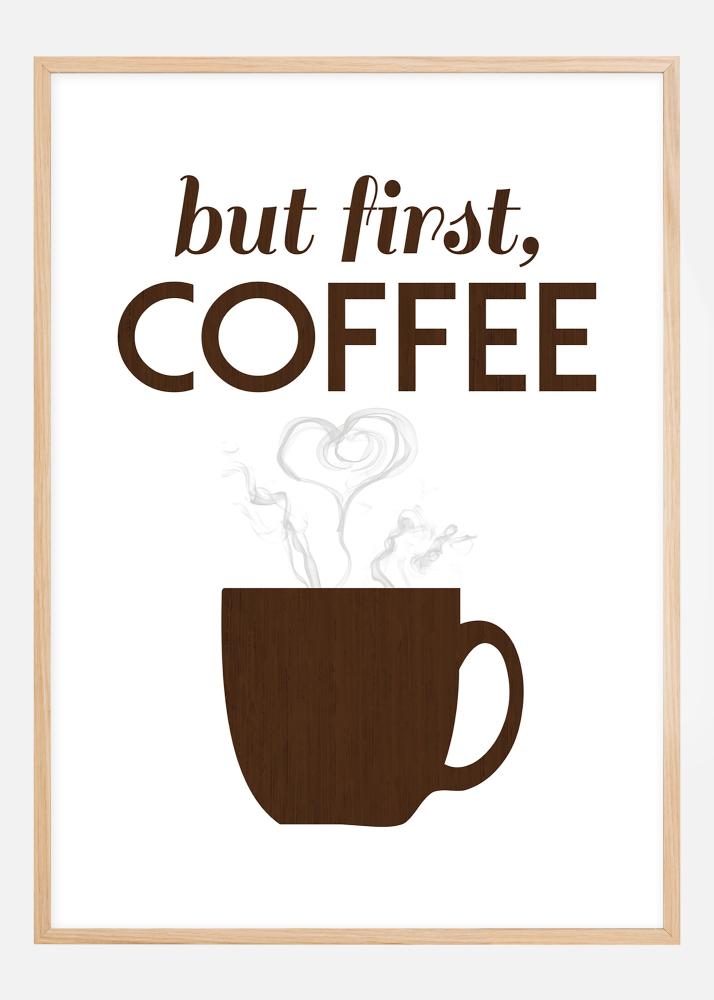 Plagát s okrídleným výrokom -Ale najprv, káva. A je to určite tak, že všetko je lepšie s šálkou kávy najprv? Plagát s potlačou, ktorá má pocit dreva, je perfektným darčekom pre toho, kto nemôže žiť bez svojej šálky kávy ráno. Hodí sa tiež výborne na pracovisku, kde chcete objasniť poradie priorít. Doplnte plagát rámom na obraz, ktorý ladí so zvyškom interiéru, alebo zvoľte rám z tmavého dreva, aby ste zvýraznili drevený pocit na motíve.