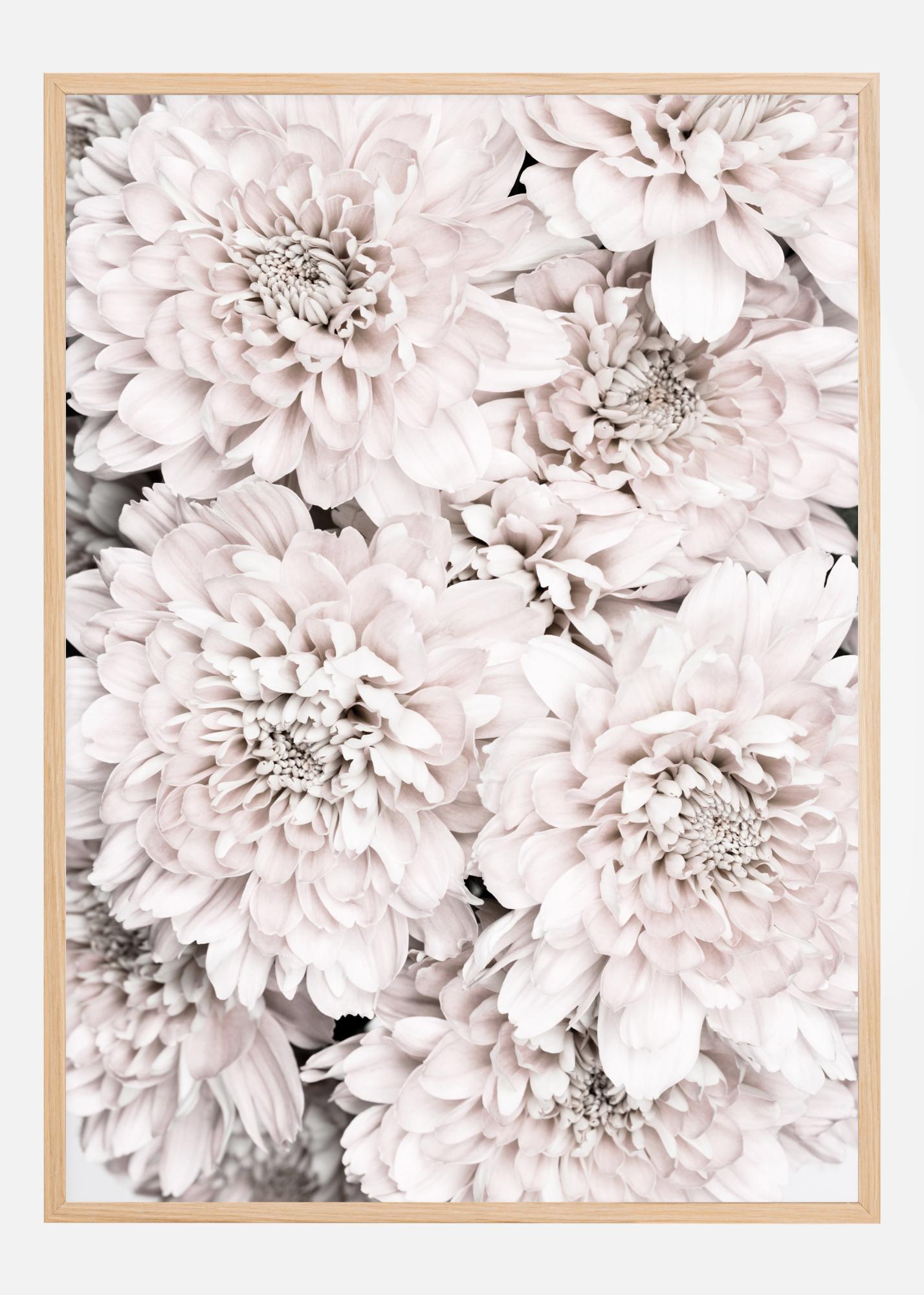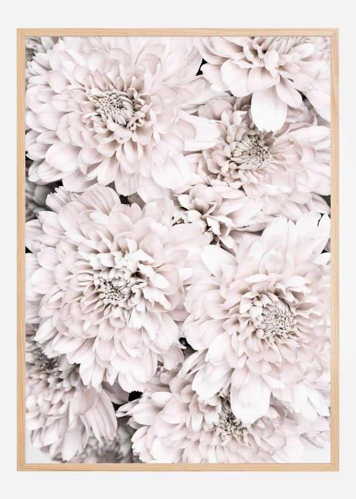 Elegantný plagát s kolekciou rôznych chryzantém. Štyri veľké kvety chryzantém zapĺňajú tento obraz, každý jemný a plný malých okvetných lístkov. Spárujte jemné ružové a biele odtiene s neutrálnou stenou vo vašej spálni pre kúzelnú atmosféru.