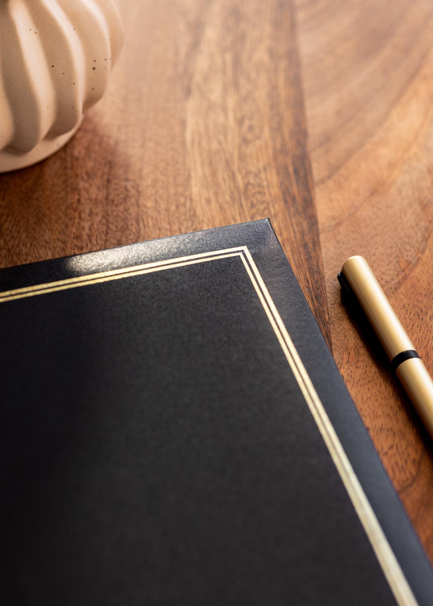 Classico Album Čierny je ideálna voľba pre každého, kto chce vytvoriť osobný a štýlový fotoalbum. Elegantné obálky v čiernej a zlatej farbe dodajú albumu nadčasový pocit, ktorý sa hodí na každú príležitosť. Album má rozmery 32x34 cm a obsahuje 100 bielych strán, čo zodpovedá 50 listom, na ktoré môžete prilepiť svoje obľúbené fotografie.