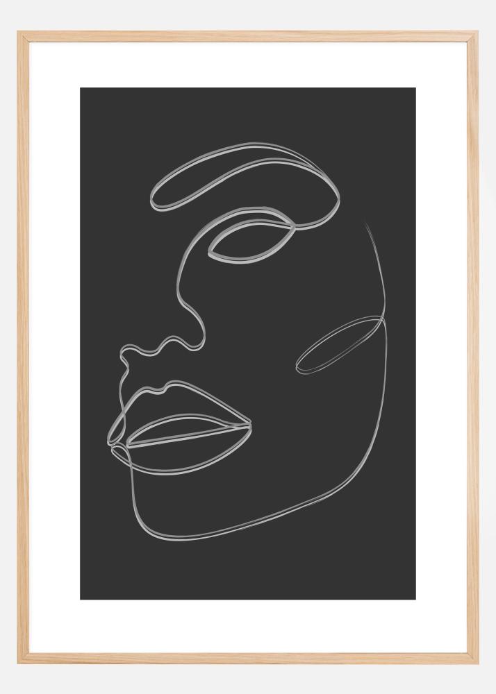 Krásny portrétový plagát vytvorený jednoduchými ťahmi štetca. Jednoduché línie tvoria ženskú tvár na béžovom pozadí. Jednoduchosť v jej najlepšej forme. Štylizované línie tvoria oko, nos a ústa. Dajte svojmu domovu pocit galérie pomocou tohto obrazu.