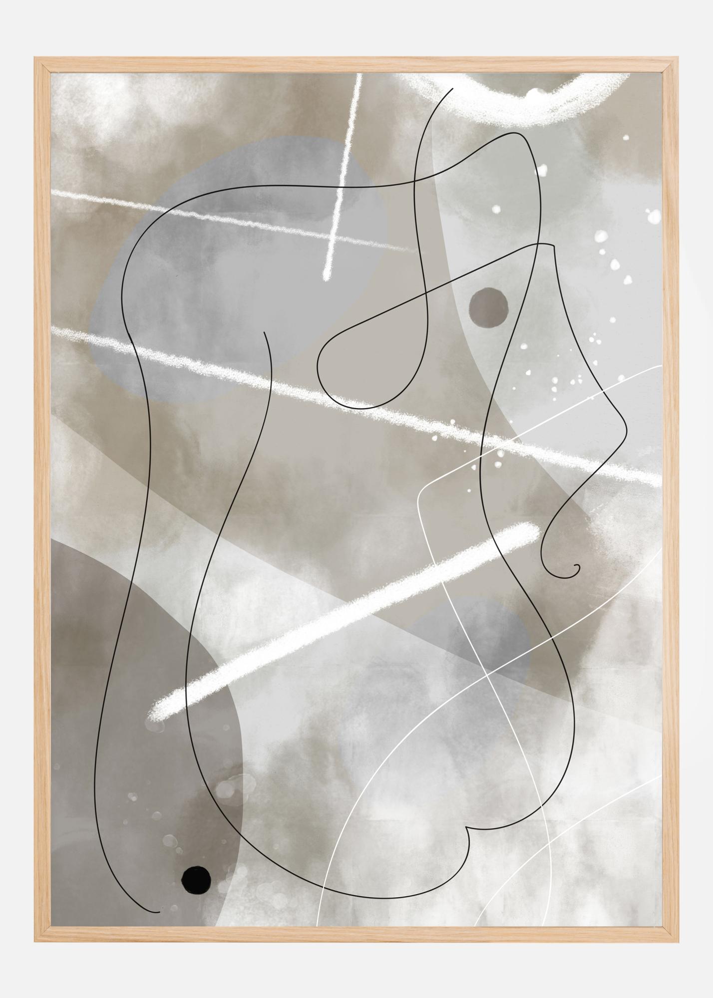 Abstraktný plagát s tvárou z jemných línií. Za tenkými čiarami má tvár nejasné, éterické modré a sivé pozadie. Ďalšie abstraktné línie a tvary sa mihajú okolo, čo z tohto robí komplexnejšie dielo. Rozlúštite tento obraz v pohodlí svojho domova.