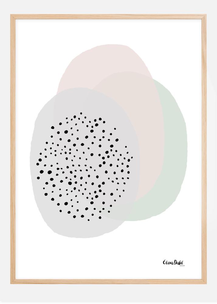 Umelecký plagát s čudne tvarovanou škvrnou s tromi rôznymi farbami, z ktorých jedna obsahuje rad malých čiernych bodiek. Modrá, ružová a zelená časť prekrytých tvarov pridáva príjemný dotyk k tomuto abstraktnému obrazu. Nechajte ich viac vyniknúť výberom vhodnej farebnej steny, na ktorú tento výtvor zavesíte.