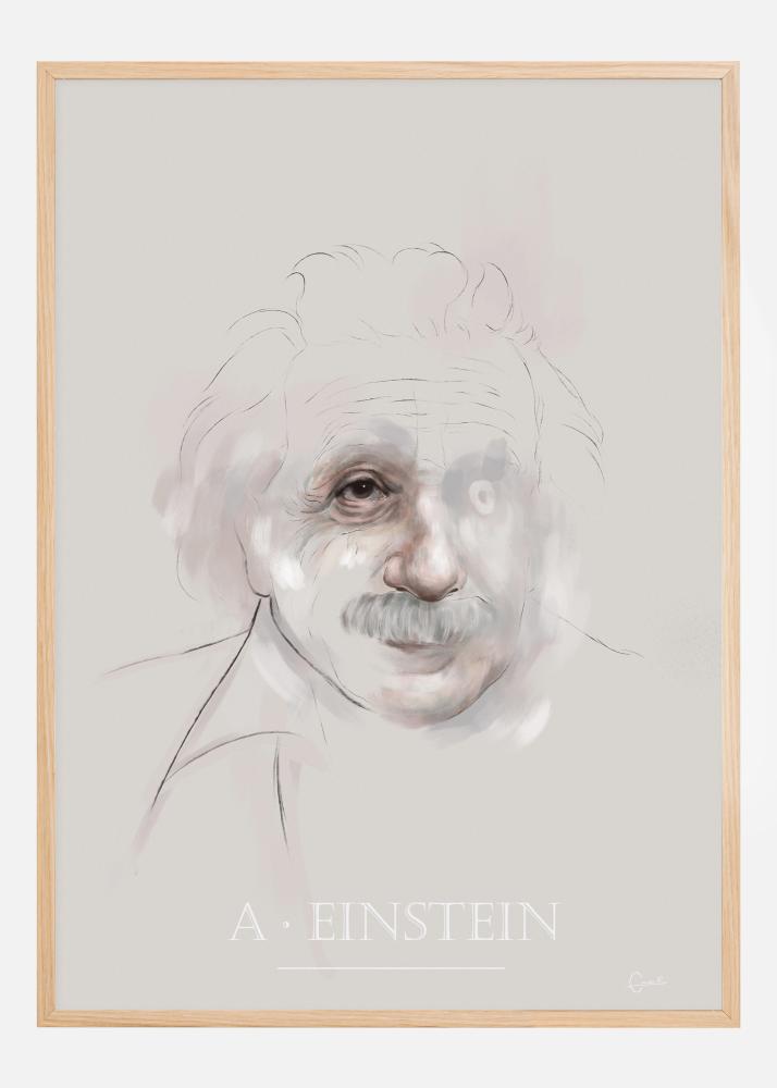 Einsteinov plagát, ktorý zobrazuje rýchlu skicu excentrického vedca. Jemné línie vytvárajú časť jeho tváre, ale iba jedno oko, jeho nos a fúzy sú detailne znázornené a umožňujú Einsteinovi vystúpiť z plagátu. Nechajte sa inšpirovať jeho priateľským pohľadom, keď sa na vás pozerá.