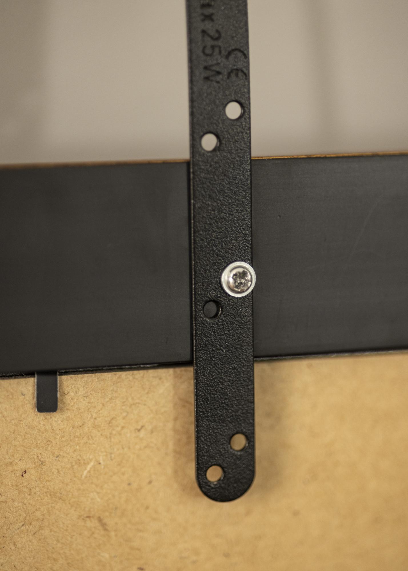 Obyčajne pripevníte osvetlenie obrazu na zadnú stranu rámu, nevýhodou toho je, že je potrebný drevený rám (niektoré kompozitné rámy tiež fungujú), ktorý má široký profil, aby bolo možné do rámu pripevniť skrutky. S naším nástenným držiakom si s tým nemusíte robiť starosti a jednoducho namontujete svoje osvetlenie obrazu priamo na stenu za obrazom.