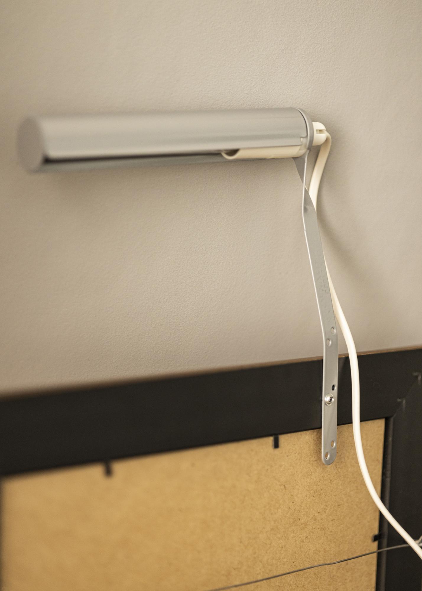 Bežne pripevňujete osvetlenie obrazu na zadnú stranu rámu, nevýhodou je, že potrebujete drevený rám (niektoré kompozitné rámy sú tiež vhodné), ktorý má široký profil na upevnenie skrutiek do rámu. S naším nástenným úchytom sa nemusíte týmto trápiť, stačí, keď osvetlenie obrazu pripevníte priamo na stenu za obrazom.