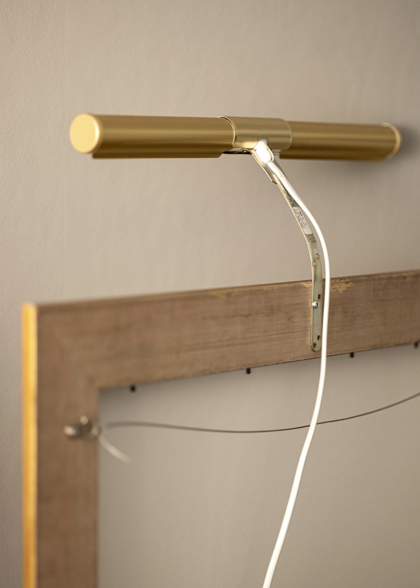 Zvyčajne umiestnite osvetlenie obrazov na zadnú stranu rámu, nevýhodou je, že je potrebný drevený rám (niektoré kompozitné rámy sú tiež vhodné), ktorý má široký profil, aby bolo možné do rámu upevniť skrutky. S naším stenovým úchytom nemusíte na to myslieť a jednoducho namontujete svoje osvetlenie obrazov priamo na stenu za obrazom.