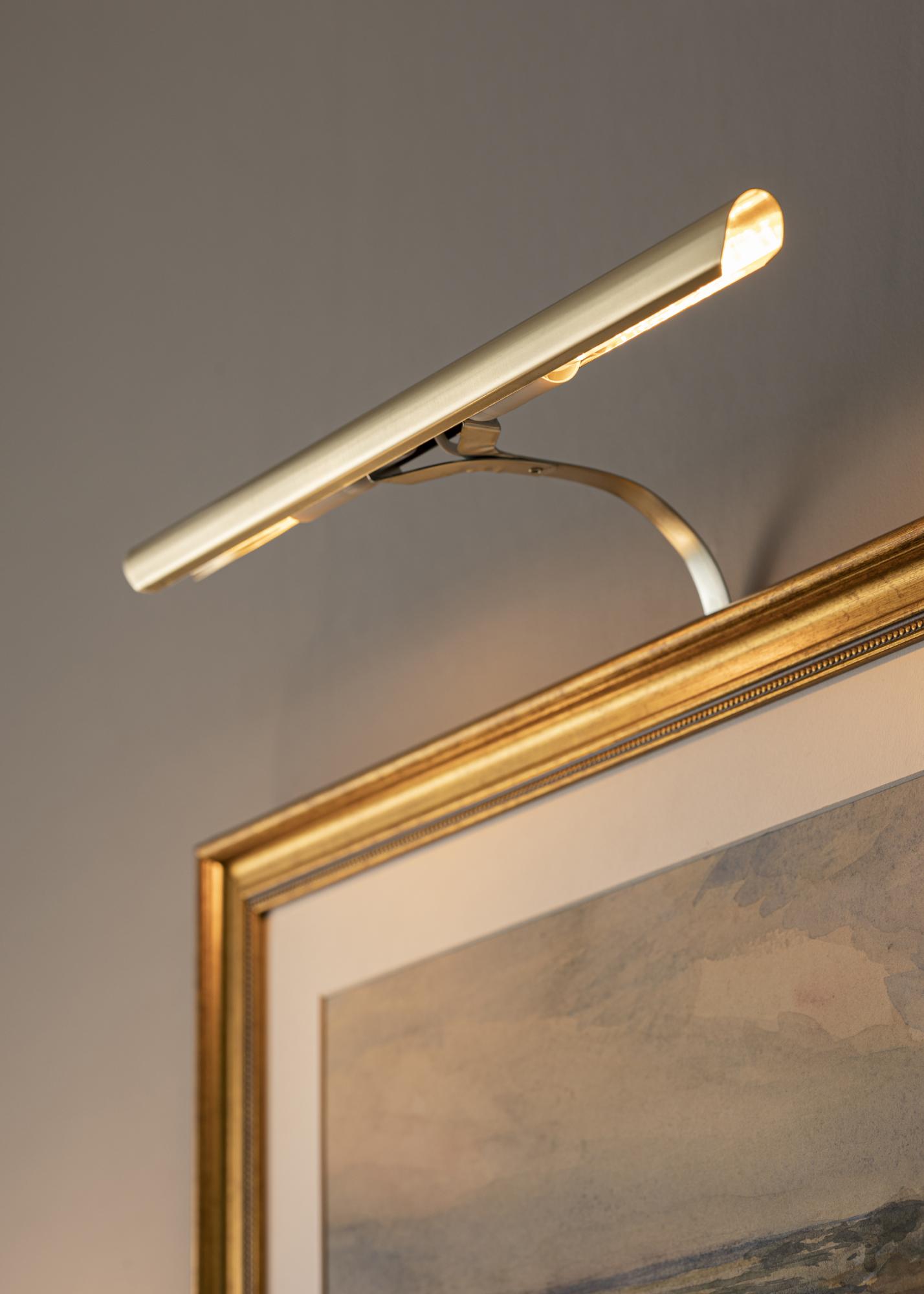 Bežne pripevňuješ osvetlenie obrazu na zadnú stranu rámu, nevýhodou je, že to vyžaduje drevený rám (niektoré kompozitné rámy tiež fungujú), ktorý má široký profil, aby bolo možné skrutkovať do rámu. S naším nástenným upevnením sa o to nemusíš starať a jednoducho namontuješ osvetlenie obrazu priamo na stenu za obrazom.