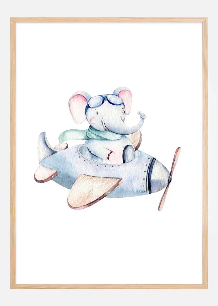 Zachyťte úlet fantázie s týmto očarujúcim plagátom zobrazujúcim dobrodružného malého slona, ktorý sa vydáva do neba na vintage lietadle. Ideálny na prebudenie snov o dobrodružstvách u mladých aj mladých srdcom, tento print ponúka nádhernú kombináciu hravosti a nostalgie. Modrý tón ilustrácie, zvýraznený radostným úsmevom slona a pilotnými okuliarmi, vyvoláva obrazy nebeských dobrodružstiev a objaviteľských ciest.