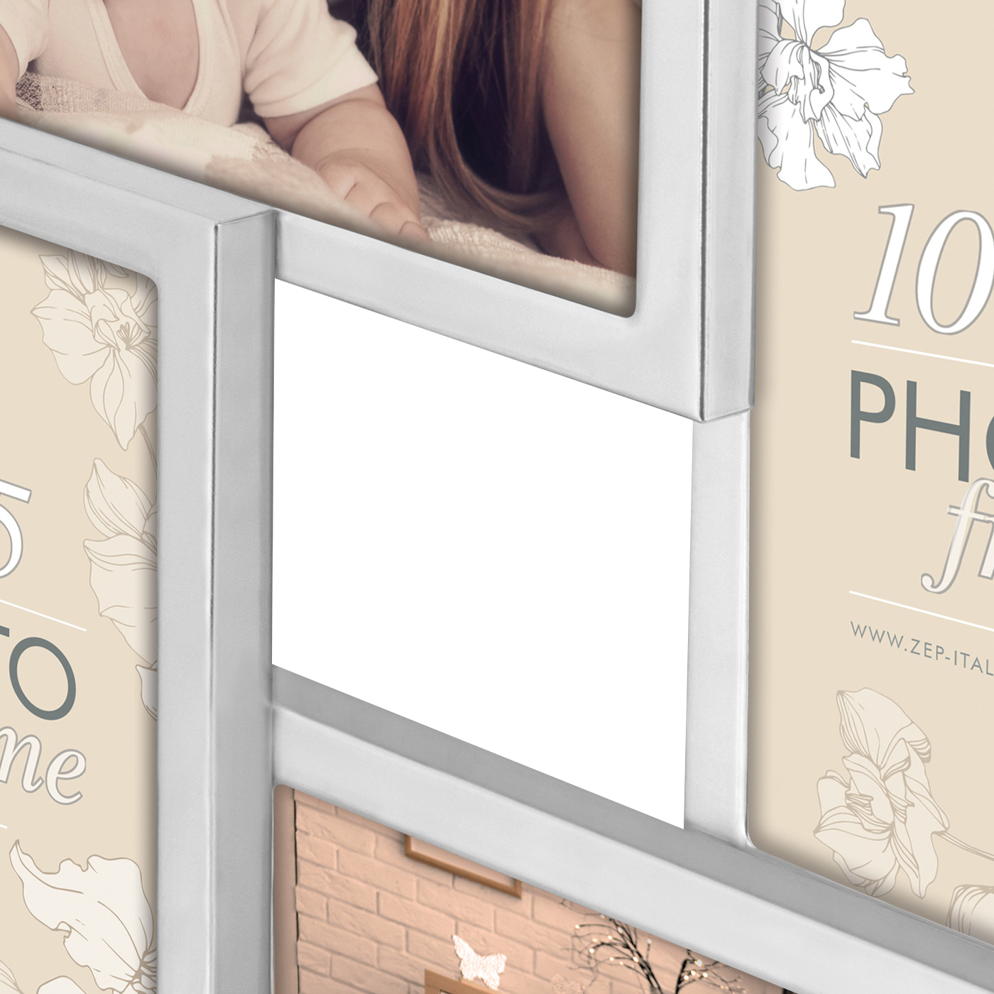 Rám je navrhnutý pre obrázky s veľkosťou 10x15 cm, čo je bežná veľkosť pre fotografie. S rozmermi 25x25 cm sa skvele hodí na steny aj police a jeho strieborný povrch dodáva vášmu domovu moderný nádych.