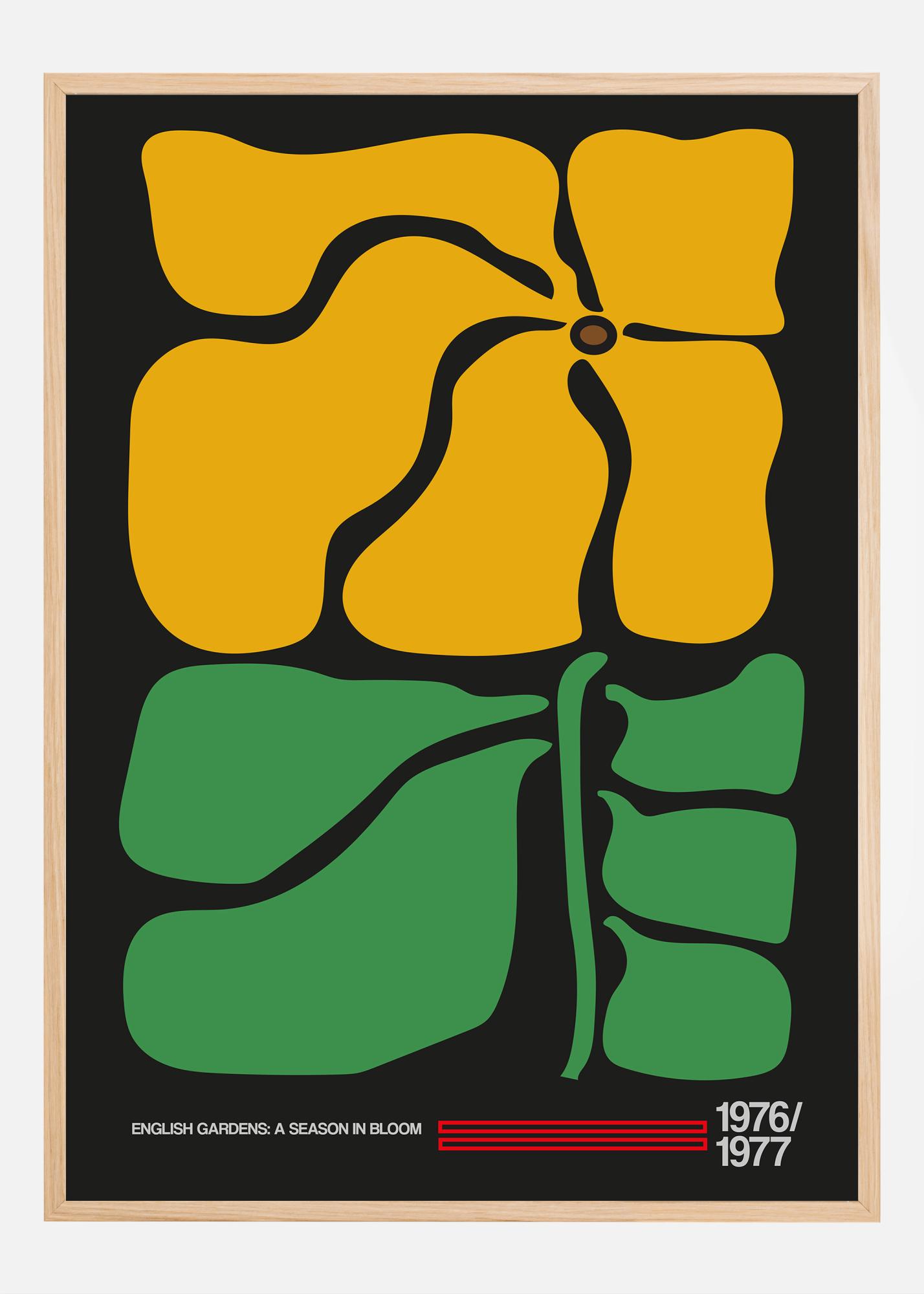 Tento plagát je elegantným a konceptuálnym stvárnením zázrakov prírody a text '1976/1977' vyvoláva pocit historickej alebo opakovanej udalosti, ako je každoročné kvitnutie alebo špeciálna výstava. Dizajn je minimalistický, no výrazný, používa geometrické tvary na zobrazenie kvetu a jeho lístia takmer abstraktným spôsobom. Je to ideálna voľba pre všetkých, ktorí oceňujú umenie zachytávajúce podstatu prírody bez toho, aby ju zobrazovalo vo svojej doslovnej podobe. Tento plagát určite vyvolá rozhovory a obdiv v každej miestnosti, kde je vystavený.