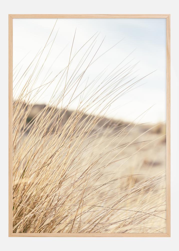 Tento plagát zobrazuje mäkkú a pokojne krajinu na poli suchého tráva, kde sa jeho prírodné odtiene béžovej a hnedej miešajú proti rozmazanému pozadiu jemných svetlých tónov. Uspokojujúca a prírodne ladená kompozícia pozýva k reflexii a má relaxačný účinok, čo ju robí ideálnou pre miestnosti určené na relaxáciu a obnovu.