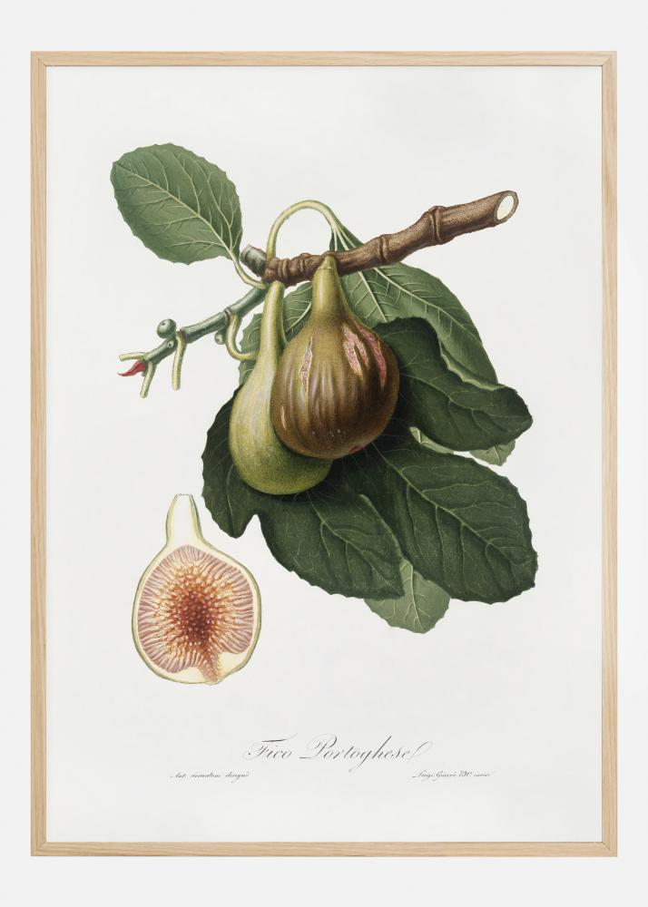 Botanický plagát s ilustráciou figy. Tento obraz pripomína staré školské obrázky so svojimi jednoduchými, ale napriek tomu detailnými kresbami na stene. Akvarelová maľba zachytáva všetky detaily, vrátane priečneho rezu figy a semienok vo vnútri.
