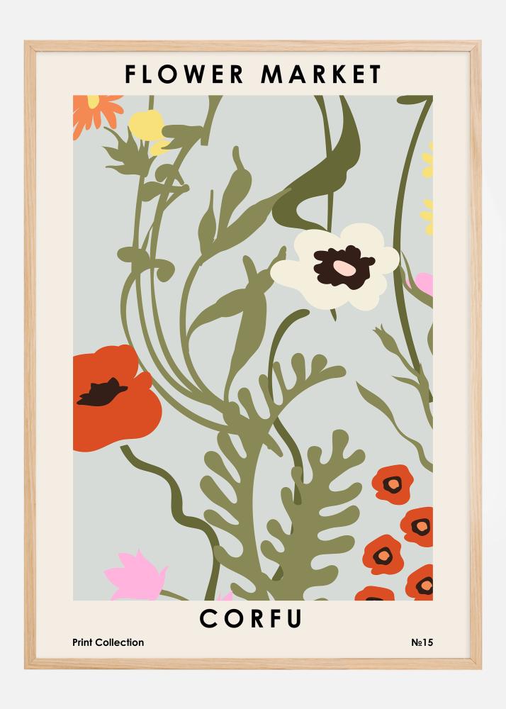 "CORFU" je elegantne vytlačené na spodku, nad "Print Collection ?15", čo posilňuje pocit miesta a príslušnosti. Tento tlačený obraz by rozjasnil každý priestor a vniesol kúsok stredomorskej kúzla do vášho domova. Farebná schéma je inšpirovaná bohatou flórou Korfu, čo prináša farebný akcent a vizuálny záujem do akéhokoľvek prostredia, v ktorom je umiestnený. Je to perfektný plagát pre každého, kto sa chce obklopiť spomienkou na slnečné pláže a živé kvetinové trhy Korfu.