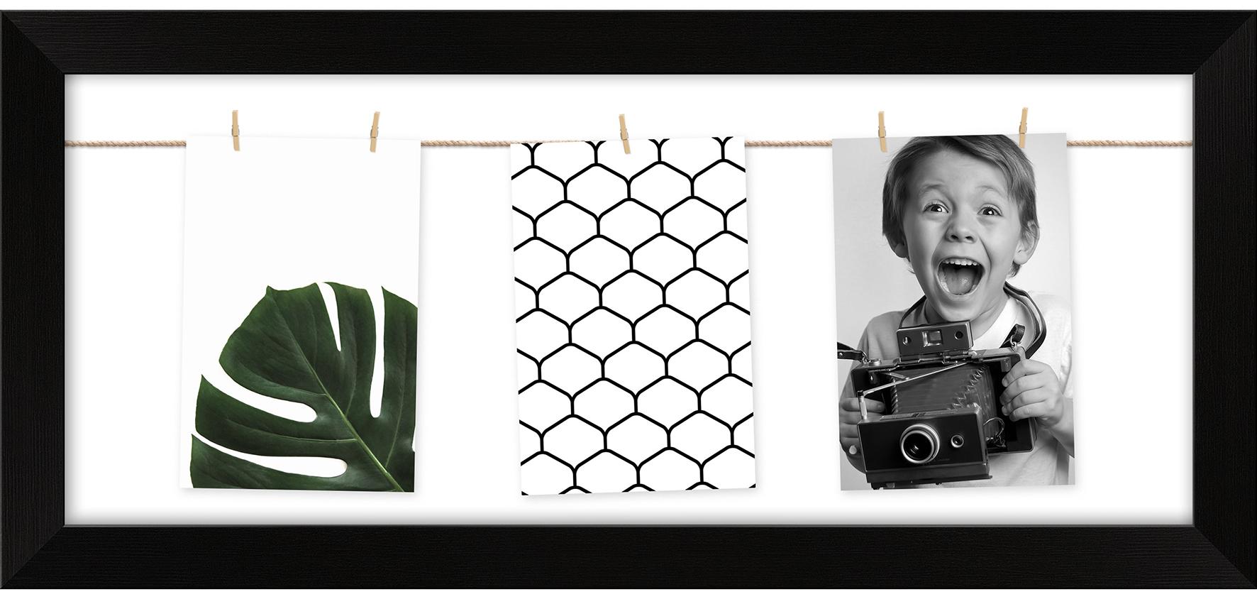 Rám má otvorený dizajn s dvoma horizontálnymi šnúrkami, na ktorých môžete jednoducho pripevniť svoje fotografie pomocou priložených miniklieští. Celkovo je súčasťou 5 klieští, čo umožňuje ľahké vymieňanie a obmieňanie fotografií alebo ilustrácií podľa vašich potrieb.