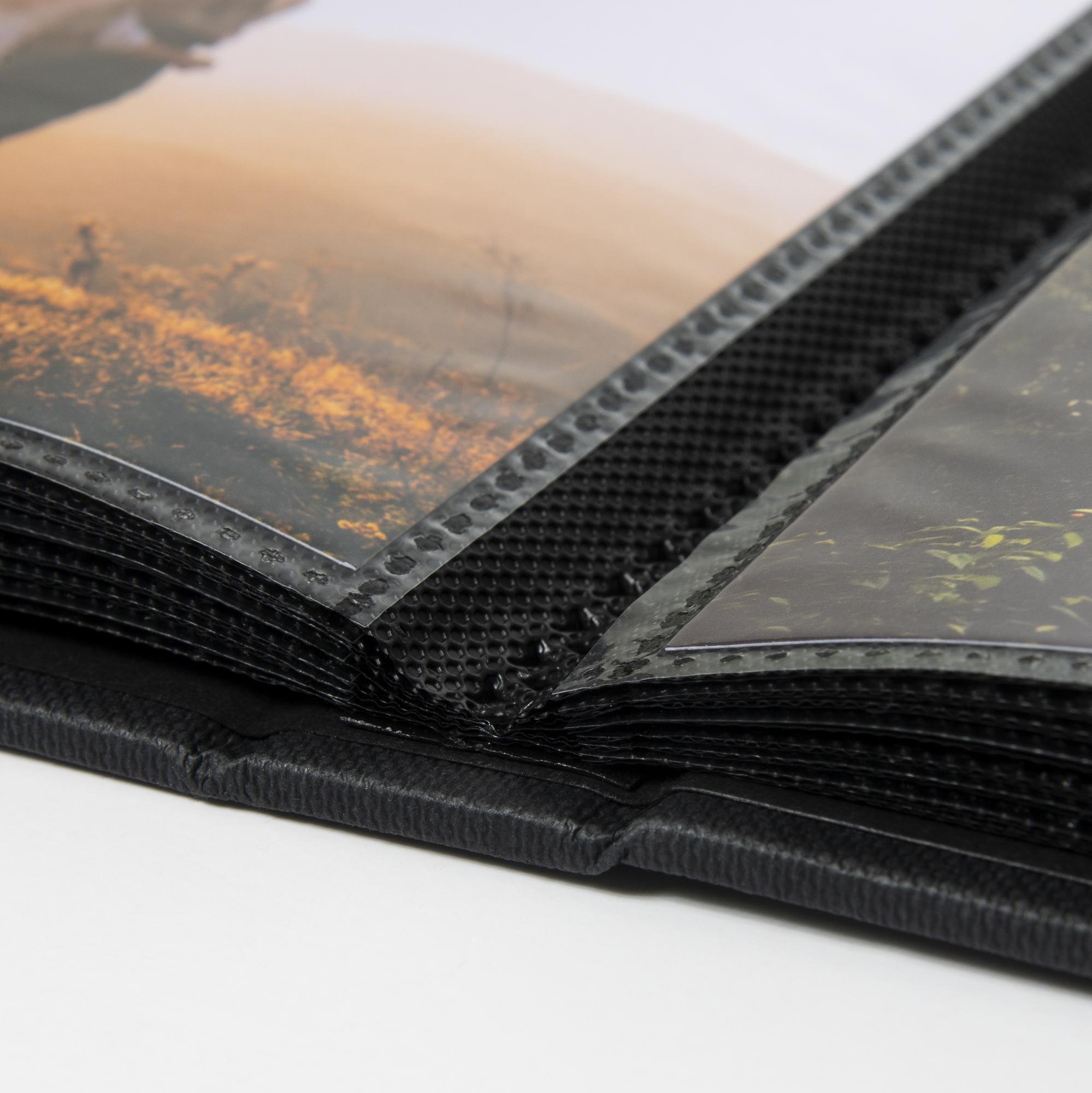 Album má čierne listy vyrobené z bezkyselinového papiera. Obrázky sa umiestňujú do praktických foto vreciek.