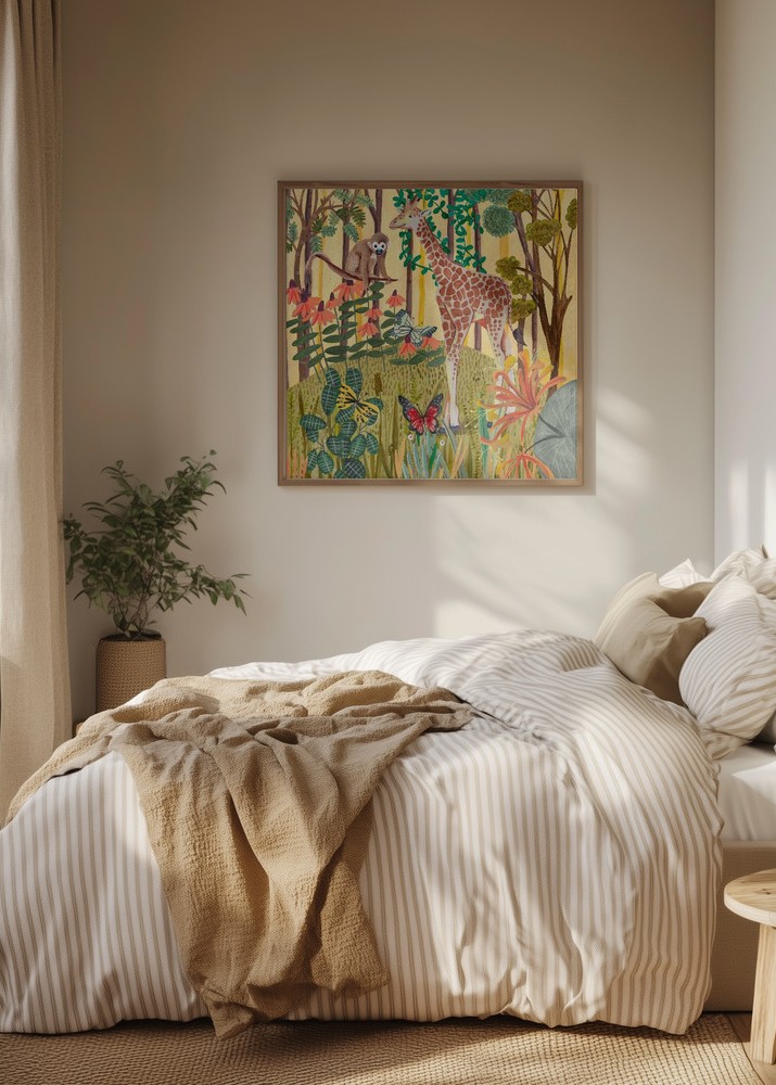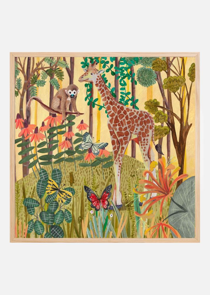 Zvieratá / Žirafy / Kvety / Les / Ilustrácie / Detské obrázky