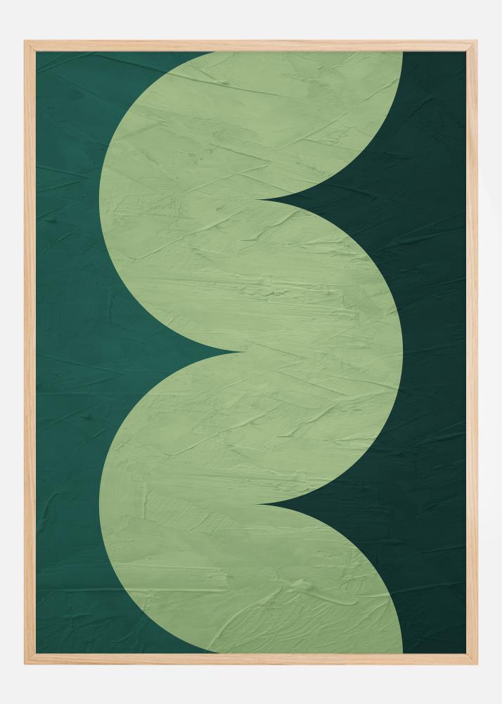 Tento abstraktný a umelecký plagát sa vyznačuje svojím odvážnym grafickým dizajnom so splývavými zakriveniami, ktoré vytvárajú hravý a dynamický pocit. Dva zelené odtiene, jeden svetlejší pastelový a jeden hlbší lesný tón, sa navzájom dopĺňajú a dodávajú pocit života a rastovej sily. Toto umelecké dielo prináša moderný nádych a sviežu atmosféru do akejkoľvek miestnosti a je poctou prirodzeným odtieňom zelenej, ktoré nachádzame v prírode.