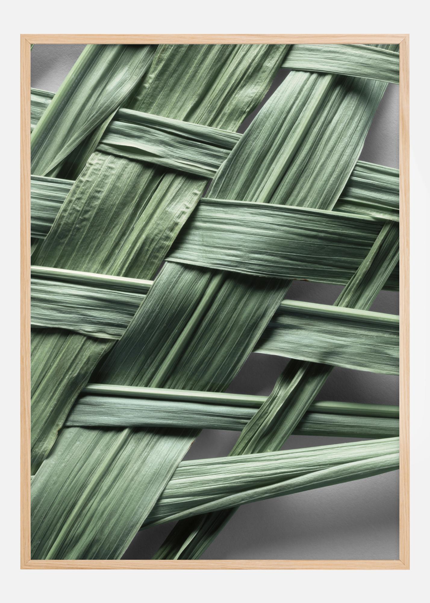Tento štýlový a prírodou inšpirovaný plagát zobrazuje detailne prepracovanú tkaninu zelených listov, ktorých línie sa krížia navzájom v organizovanom chaose. Živá zelená farba a rôzne textúry vychádzajúce z listov vytvárajú upokojujúci a svieži dojem, čo prispieva k pocitu prítomnosti prírody v interiéri.