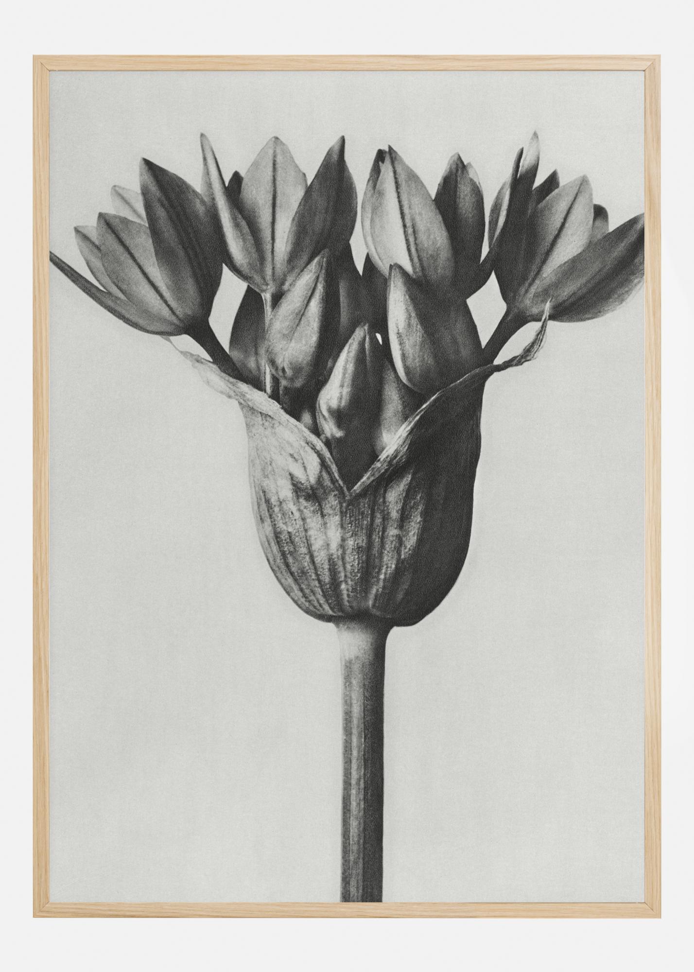 Krásny čierno-biely plagát kvetu, z ktorého vychádza mnoho menších kvetov. Predstavuje symbol šťastia svojou eleganciou a jednoduchosťou. Svetelné a tieňové efekty vytvárajú krásny obraz na jednoduchej sivej pozadí. To robí tento plagát vhodným tlačom do priestranného prostredia, ako je napríklad obývačka alebo spálňa.