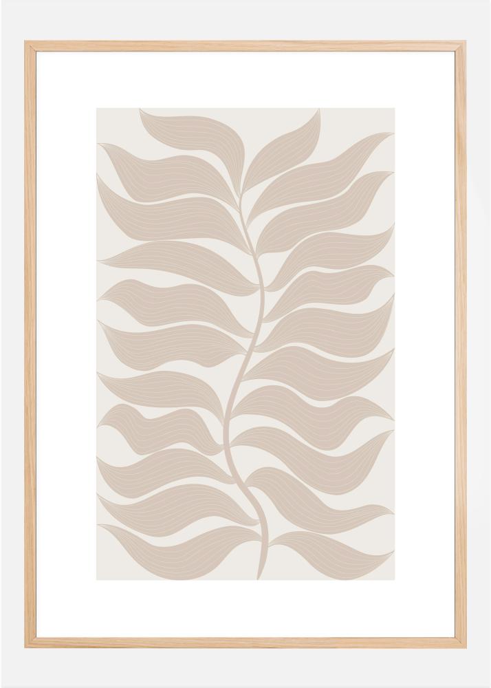 Botanický plagát s listami. Táto jemná maľba zachytáva mäkký, jednoduchý obraz jedenástich listov na každej strane stonky. Na bielom pozadí je to dokonalá tlač pre všetkých milovníkov prírody alebo tých, ktorí sa zaujímajú o listy.