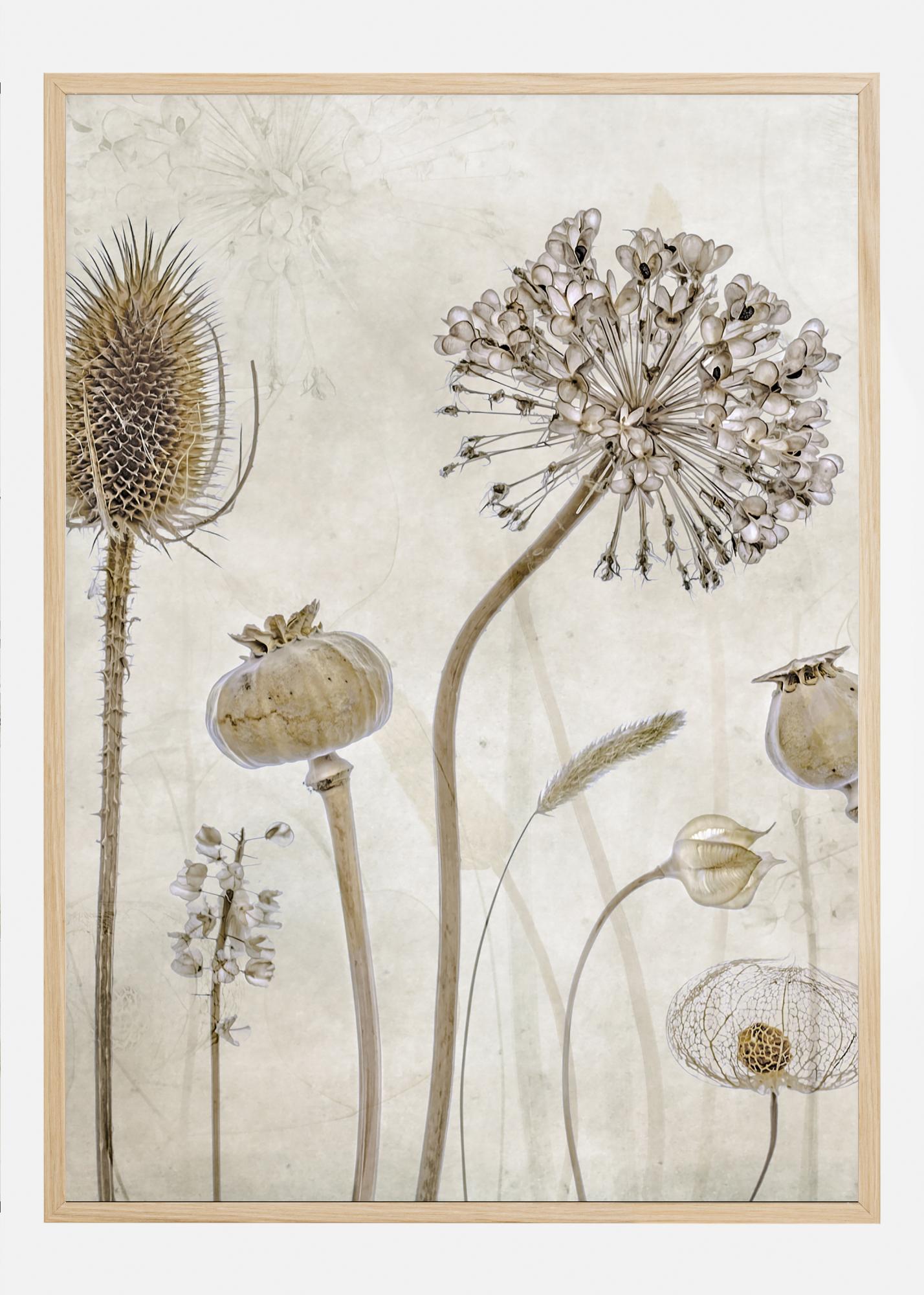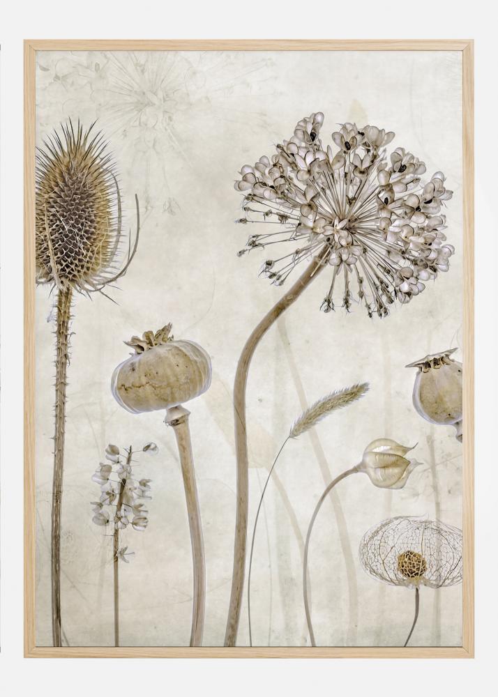 Elegantný plagát so sušenou trávou, ktorá stojí vysoko. Jemné béžové farby vytvárajú pocit pokoja a tepla. Sušená tráva, ktorá fúka vo vetre, prispieva k pocitu pokoja tohto portrétu. Zaveste tento jednoduchý, ale jemný obraz vo vašej kuchyni, aby ste vytvorili ten prirodzený pocit života.