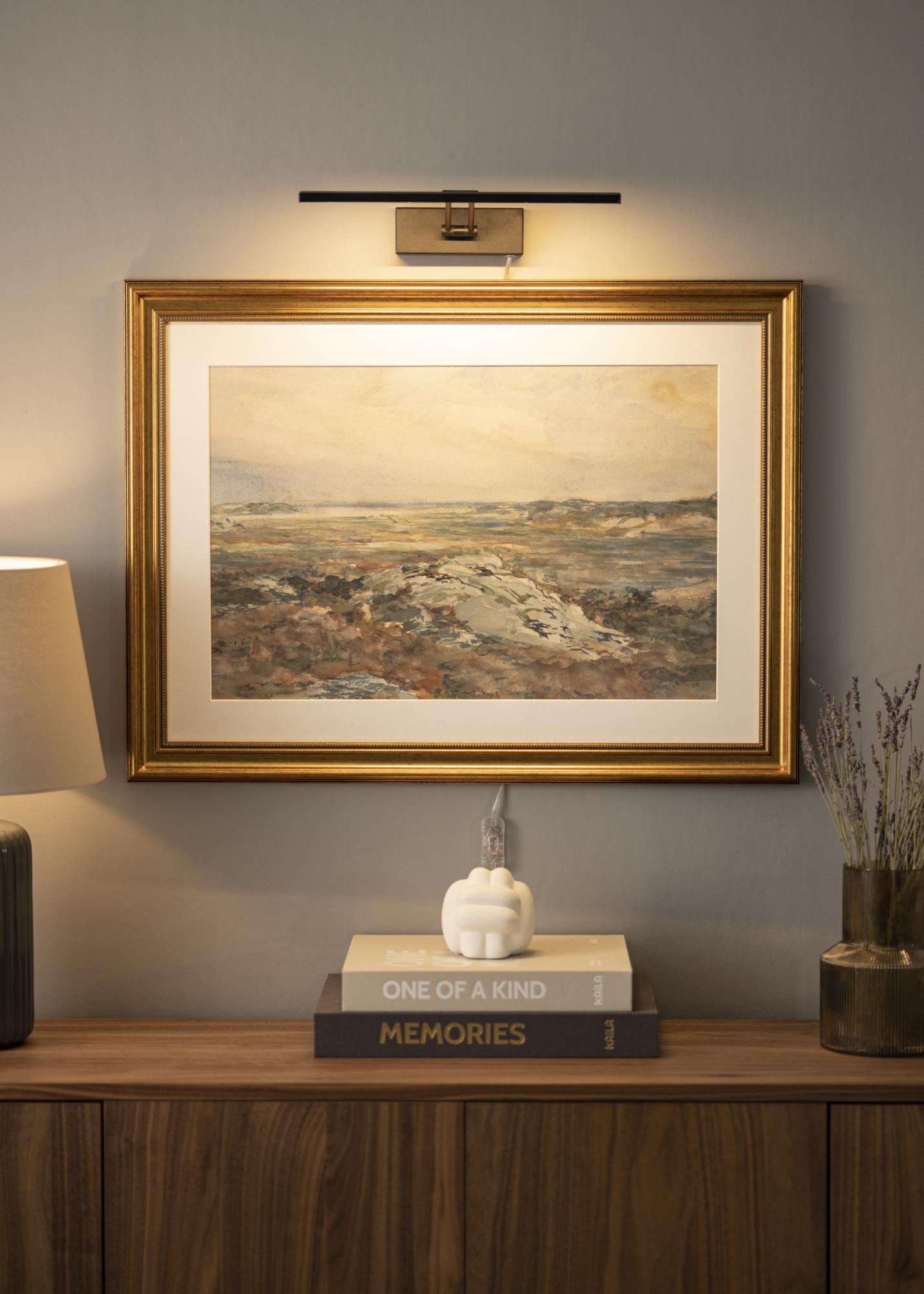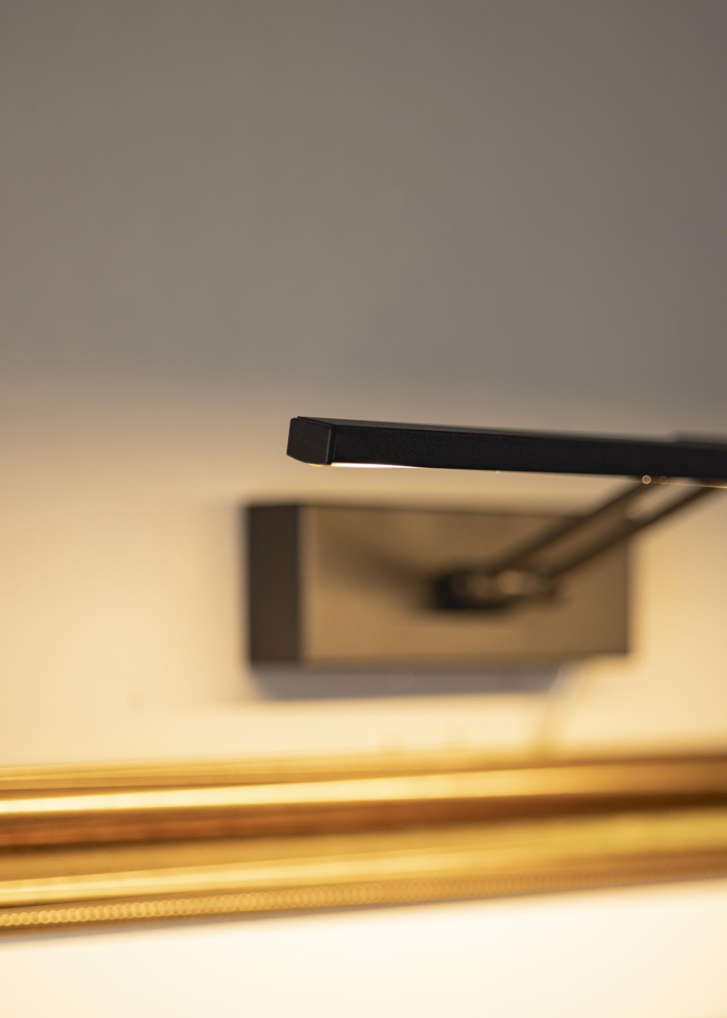 Osvetlenie obrazov v modernom švédskom dizajne, ktoré je vhodné pre obrazy so šírkou 60-100 cm. Svietidlo má výšku 5 cm a dĺžku 37 cm s odstupom od steny 20 cm. So svojím silným LED osvetlením na 720 lúmenov získate príjemné osvetlenie aj na väčších obrazoch.